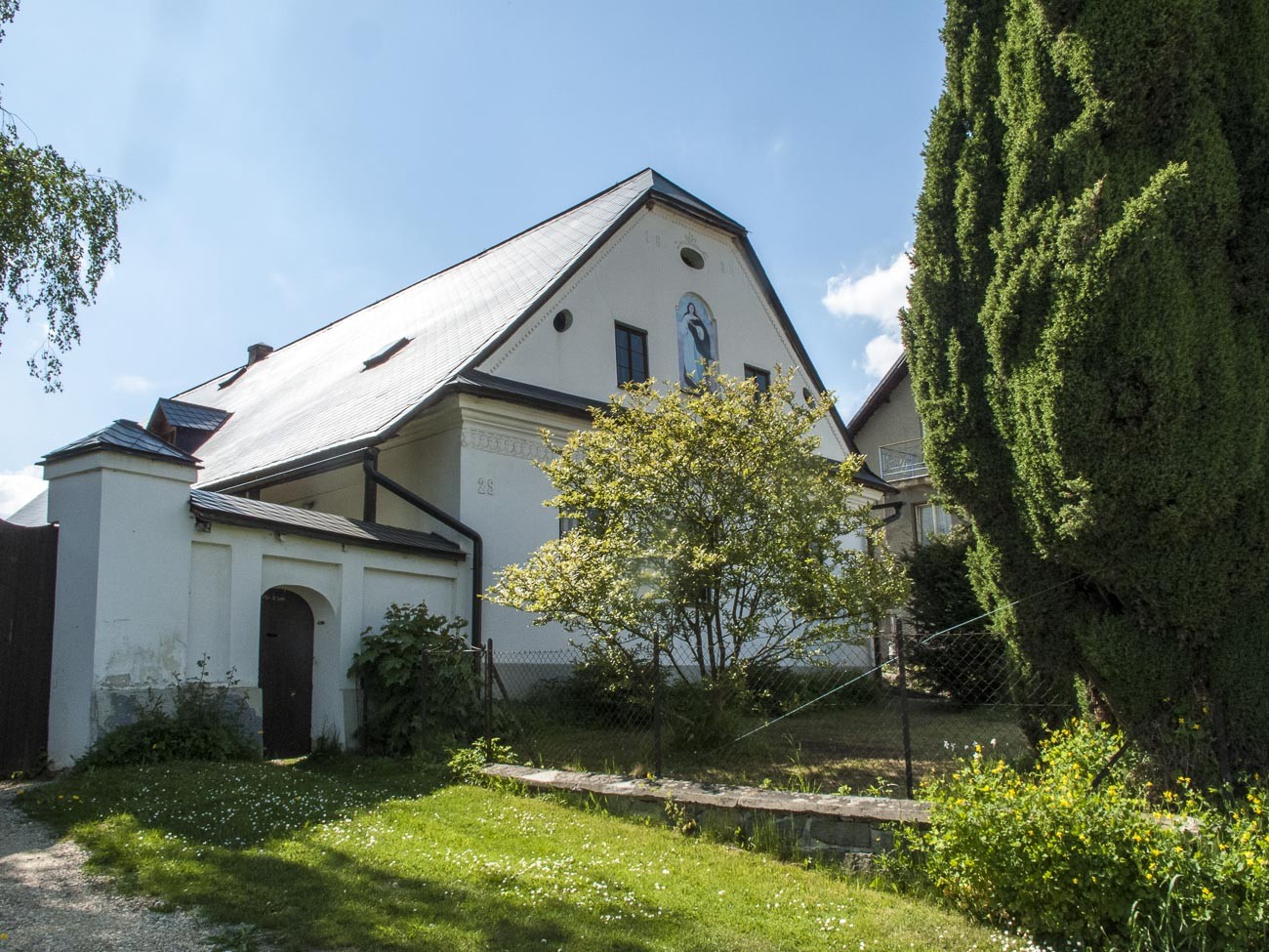 Usedlost č. 29 blízko průjezdní silnice má zdobený štukový štít se svatým obrázkem. Paní majitelka si právem zanadávala na památkáře, kteří jim kontrolují každý hřebík, ale Korunu nepustí. Letopočet 1834 poukazuje na dobu úpravy do dnešní podoby. U statku býval i výměnek, ten ovšem zmizel a na jeho místě dnes stojí hospoda U Pacinů. Mívaly tu klenuté sklepy, ale parkovaly na nich traktory JZD, takže se propadly (asi oboje).