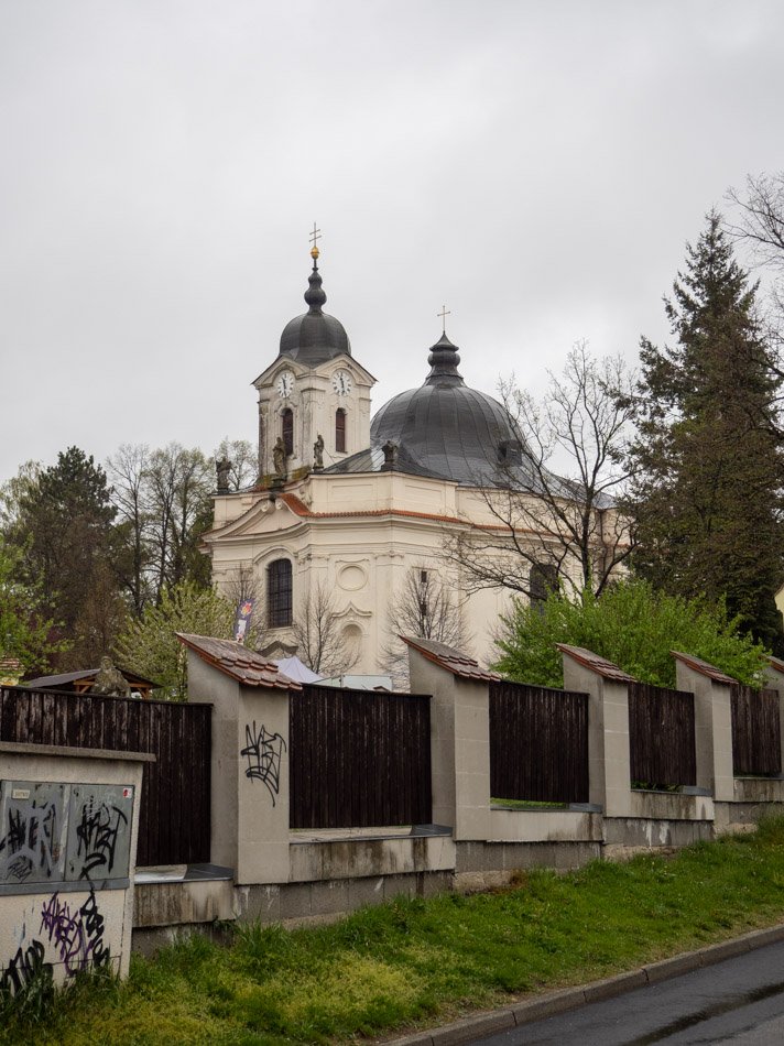 Kostel je založen zhruba na obdélníkovém půdorysu. Hlavní loď má oválný půdorys která je zakončena obdélníkovým presbytářem se zkosenými nárožími. Obdobně je řešen i vstup s výrazně konkávně prohnutým průčelím, nad které vystupuje hranolová věž.