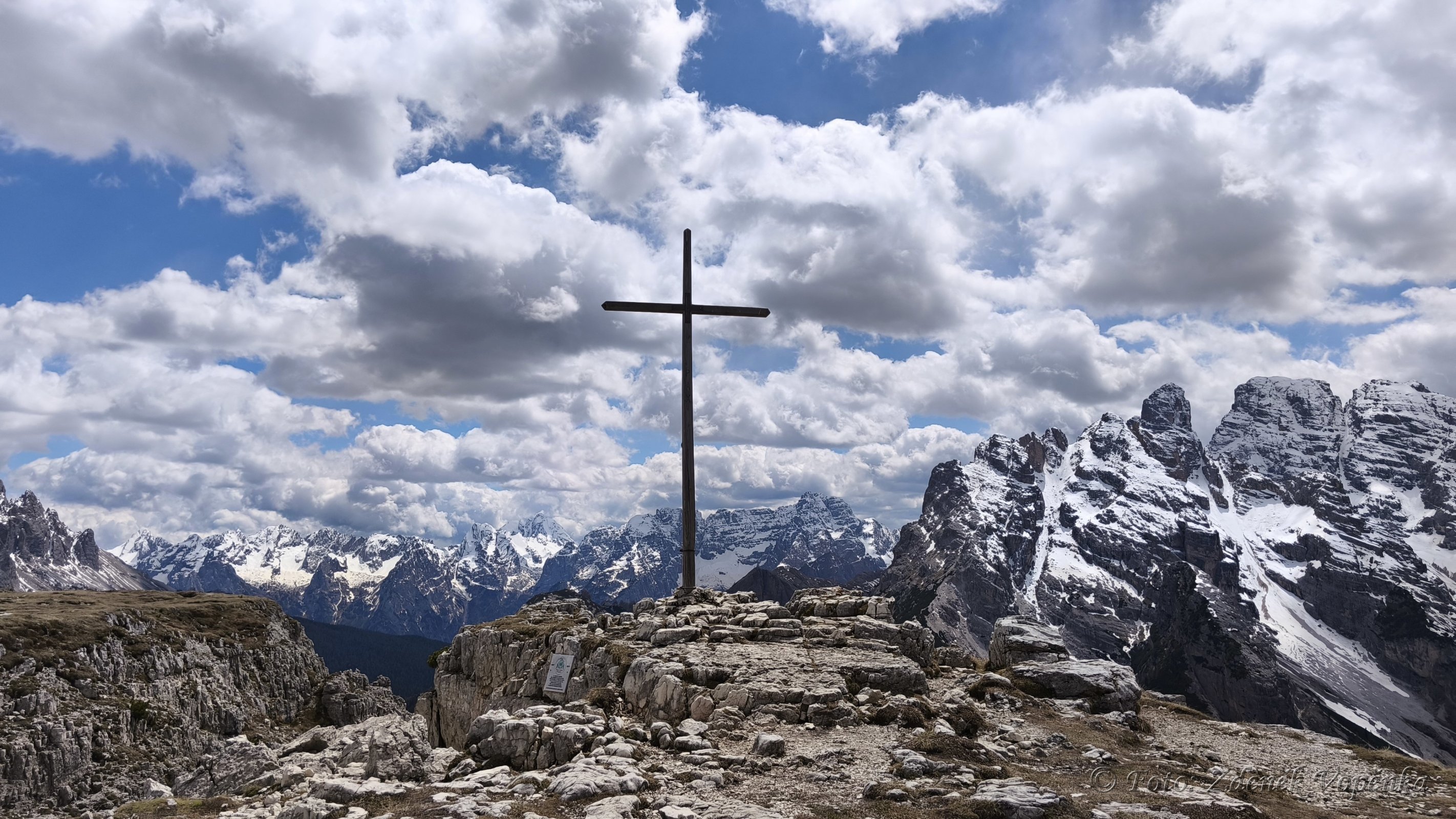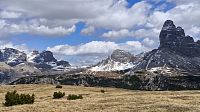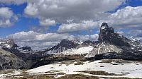 Monte Piano je hora známá především z bojů v první světové válce. Při poslední, podzimní, návštěvě Dolomit jsem na vrchol vystoupal strmou stezkou od jezera Landro. Tentokrát jsme zvolili pohodovou cestu s krásnými výhledy. Vyrážíme od Lago d Antorno po červené č.122 do sedla Forcella Bassa. Odtud již pokračuje strmá, ale pohodlná cesta k k rifugiu Angelo Bosi. A začínají se otvírat nádherné výhledy na Tre Cime, Lago Misurina i celou Gruppo di Cadini. Nahoře u chaty děláme zastávku a prohlédneme si kapličku i dělo z plzeňské škodovky, které je tu vystavené jako pozůstatek první světové války. Pomalu stoupáme na vrcholové plato, kde jsou ještě zbytky sněhu, ale mezi nimi již kvetoucí krokusy a koniklece. A především nádherné výhledy. Všechna místa jsou ale poznamenána válkou..... zákopy, bunkry a ostnatý drát... Celé místo je koncipováno jako válečný památník v přírodě, aby lidé nezapomínali. Projdeme část památníku a vystoupáme k vrcholovému kříži. Pak se pomalu vračíme zpět vychutnáváme krásné výhledy a myslíme na hrůzy, které tu prožili nevinní lidé v průběhu války. Asi v polovině sestupu odbočíme na starou a nepoužívanou silničku a po ní sestoupíme k Lago di Misurina. Tady je čas na dobrou kávu pohodu s výhledy na břehu jezera.