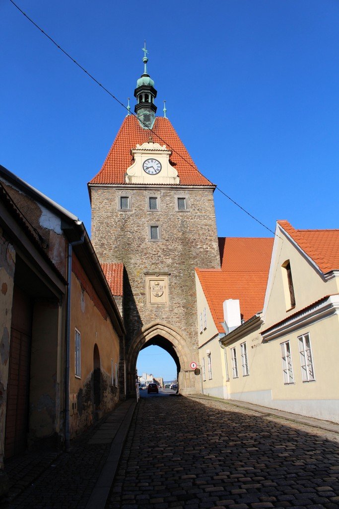 Opevnění Domažlic se stavělo současně s městem. Hradby tehdy vymezily rozsah zástavby města a to až do období baroka. A nebyly to hradby jen tak ledajaké. Zdi byly silné kolem 2 metrů a místy dosahovaly až osmimetrové výšky. Měly řadu válcových věží a před nimi byl hluboký příkop. Město mělo tři brány, na východní,severní a západní straně. Na jižní straně byla jen menší branka. Uvádí se, že za husitských válek byla postavena parkánová zeď s věžičkami. V 16. století došlo ke stavbě dalšího pásu hradeb. Stavělo se v severozápadní části a byly postaveny čtyři nové bašty, které spojovala zeď. U všech městských bran bylo postaveno předbrání s dalšími bránami. V 17. století se s hradbami již moc nepočítalo a došlo k jejich postupnému chátrání. Později se začalo s bouráním a do současnosti se dochovaly jen malé části hradeb. Ty můžeme vidět u Chodského hradu, v Branské uličce a v Příhodově a Steidlově parku. Nejzachovalejším objektem je Dolejší brána na východní straně náměstí Míru. Ještě v první polovině 19. století byl před touto bránou opevněný prostor a první brána s věží. Po zbourání této části měla namále i Dolejší brána. Měla být zbourána také. Dolejší brána je hranolová věž, která má čtyři patra nad průjezdem. Spodní část věže je ze druhé poloviny 13. století. Další dvě nástavby se stavěly v roce 1481 a v 16. století. Nejnovější úprava brány z roku 1905 je popisována jako hodně necitlivá. Přesto je jednou z typických staveb staré části města.