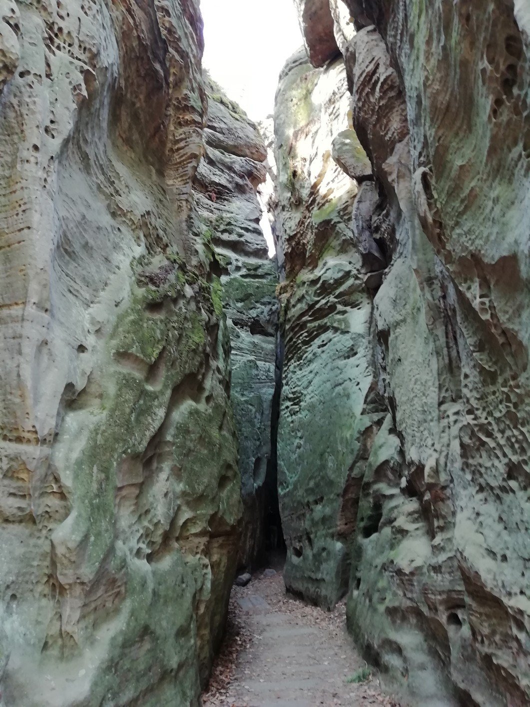 Na konci cesty se již začnou otevírat první pohledy na úžasné skalní města s někdejším dřevěným hrádkem. Lze se tady procházet donekonečna a člověk objevuje pořád něco zajímavého. Úzké kamenné schody, skalní plošiny propojené můstky.