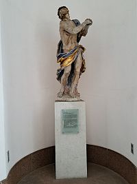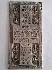U severovýchodní strany kostela Frauenkirche je na místě fontány bývalé porodnice v dlažbě osazena pamětní kovová kulatá deska a na ní je z každé strany stejný nápis: BRUNNEN DES MATERNIHOSPITALS a pod ním už odli…