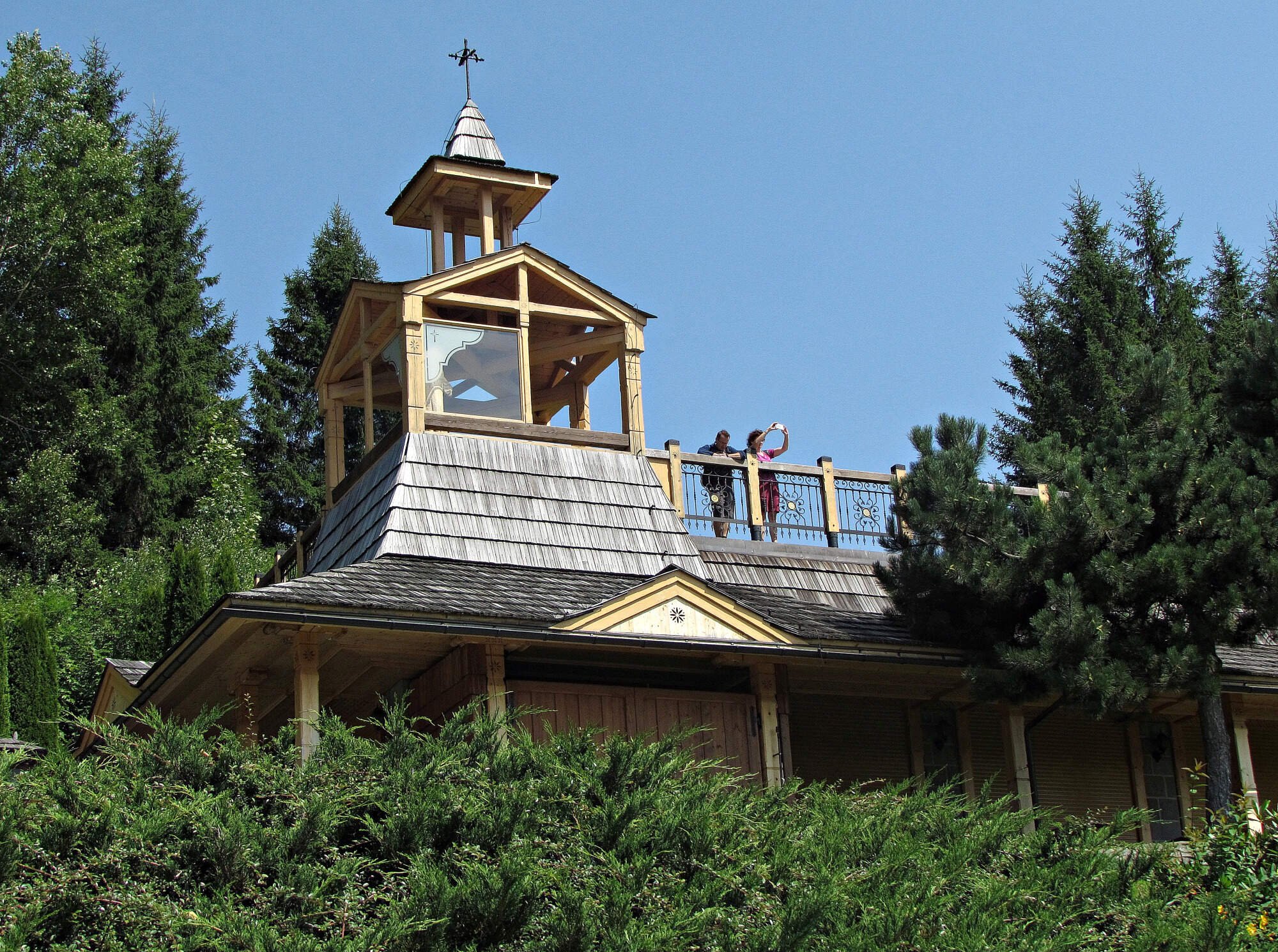 Dřevěná kaple a sochy výtvarníků u Horského hotelu Soláň