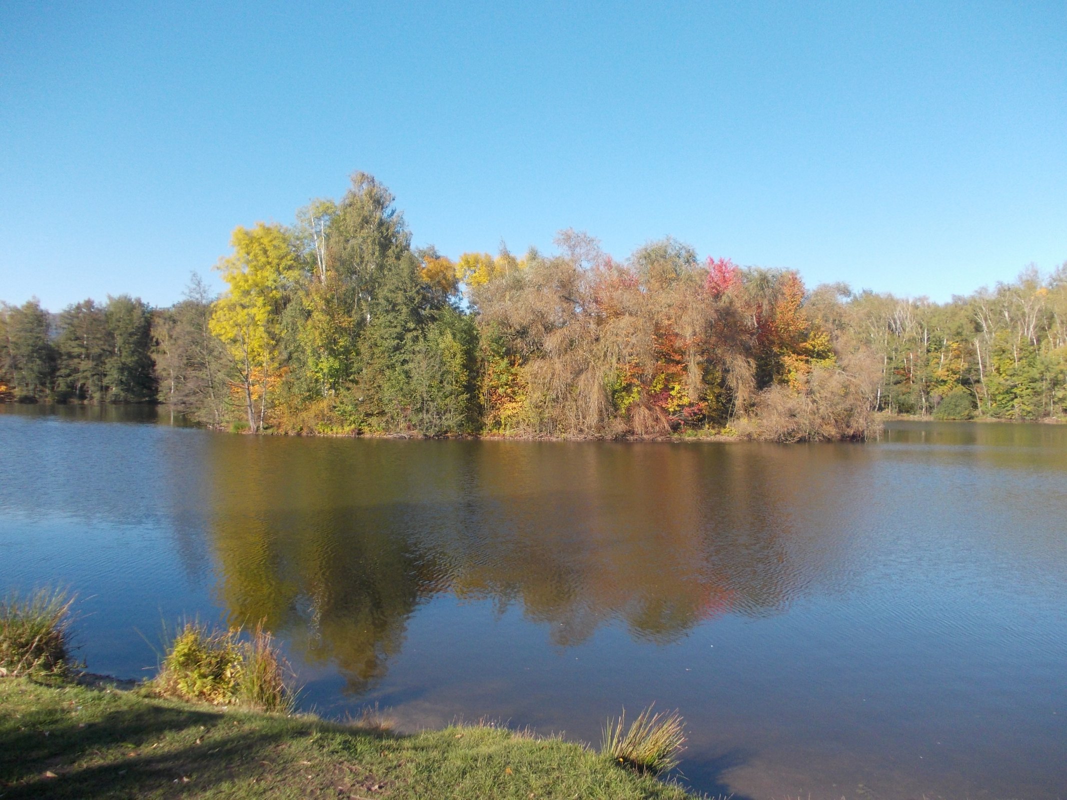 Duchcov ako severočeské mesto sa môže porovnávať s niektorým z juhočeských miest a to počtom rybníkov. Vo svojom katastri má až 10 rybníkov a v blízkom okolí sú ďalšie vodné plochy. Najväčším je rybník Barbora, mňa ale krásne jesenné počasie vylákalo k prechádzke okolo druhého najväčšieho rekreačného rybníka nazývaného Leontýna. Je to malebné miesto s vodnou plochou, ostrovčekom, trávnatou a stromovou vegetáciou a samozrejme vtáctvom. Názov rybníka Leontýna je jeho súčastný, miestni v minulosti mali zaužívaný názov ako Ruspult alebo Rousňák. Vznik rybníka sa spája s dolovaním uhlia v tejto oblasti, po rekultivácii tohto hnedouhelného lomu, jamy vytvorili rybník. Lom založili niekedy okolo roku 1897 Duchcovsko - oseckými ťažbármi pod názvom Russputtelschacht. Ťažbu uhlia ukončili pred druhou svetovou vojnou. Nepoužívaný lom čiastočne zatopený s dvoma vodnými plochami so zálivami a okolitým lesným porastom sa stal obľúbeným miestom hlavne pre detí a ich dobrodružstvá.