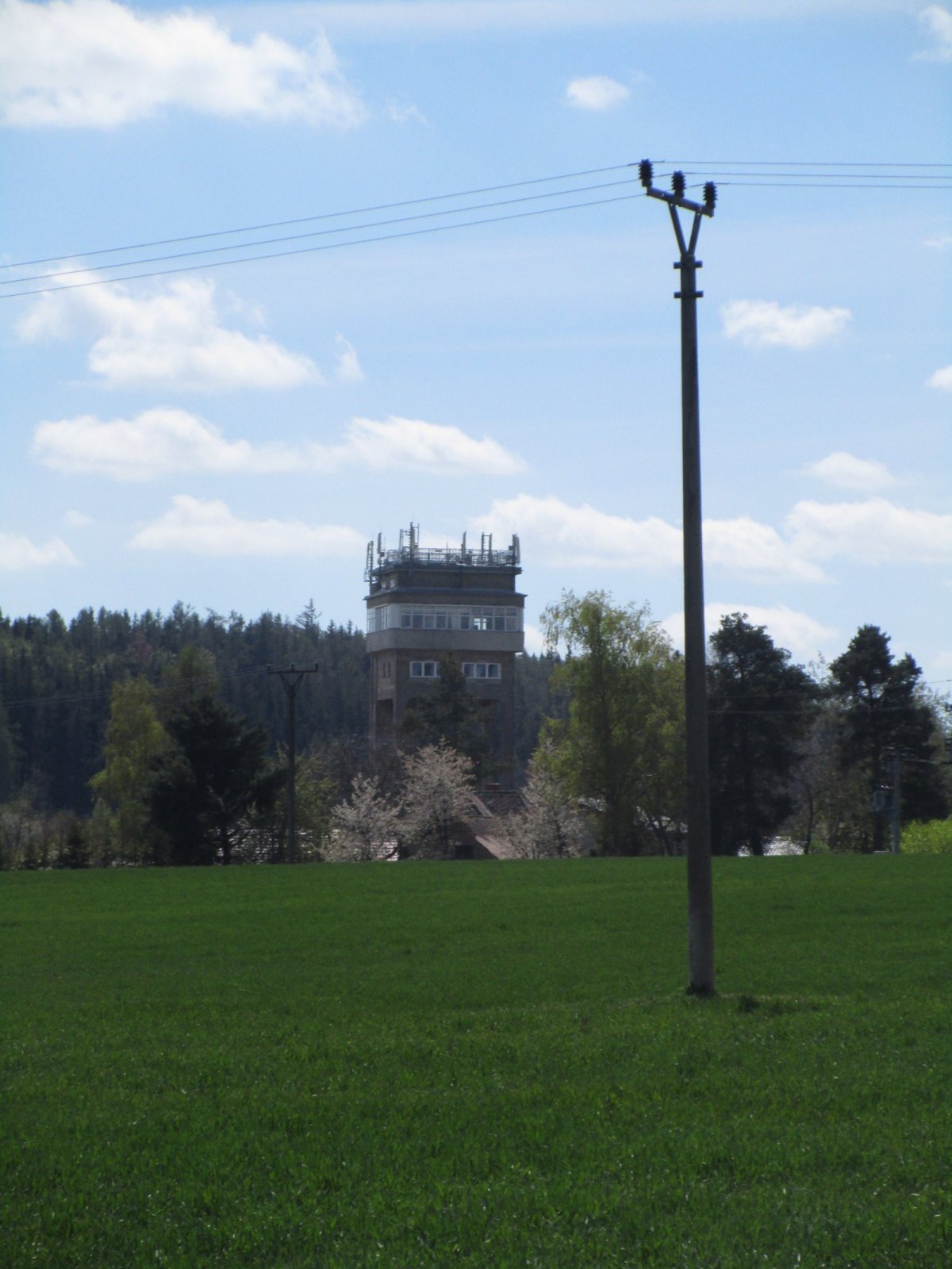 zimní pohled na těžní věž od kozičínské vodárny