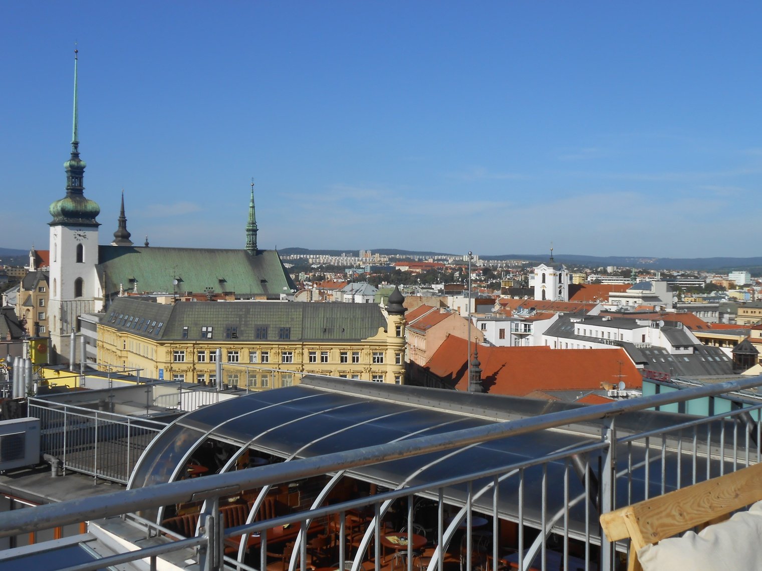 Brno-náměstí Svobody-Dům pánů z Lipé-pohled z vyhlídky na katedrálu sv. Petra a Pavla a věž Staré radnice