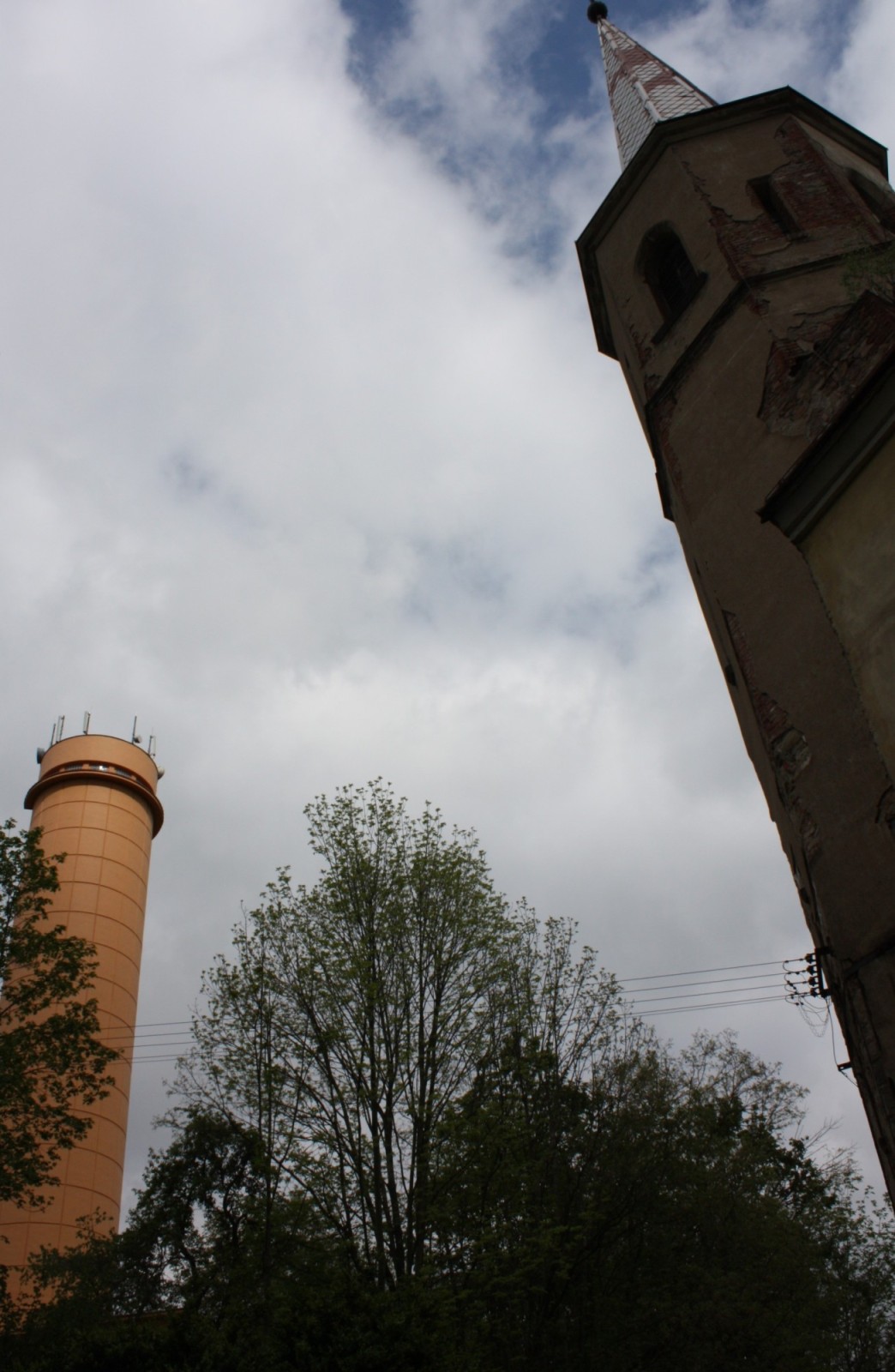 Dvě dominanty osady Práčov - kostelní a vodárenská věž