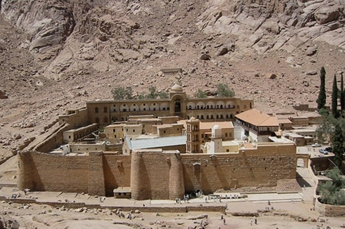 Z Mojžíšovy hory, kde jsme sledovali východ slunce, sestupujeme mezi skalami do nádherného údolí Wadi al Dajr ke klášteru sv. Kateřiny, který leží ve výšce 1570 m n.m.. Právě zde se r. 1250 před n.l. zjevil Mojžíšovi Bůh a promluvil k němu v podobě hořícího keře a přikázal mu, ať vyvede svůj lid z Egypta. Keř na nádvoří kláštera roste dodnes. U něj se zastavujeme a průvodce nám vypráví historii kláštera. V r. 338 zde císařovna Helena nechala postavit kapli a císař Justinián pak v r. 530 nechal vybudovat klášter obehnaný silnými hradbami. Původní název kláštera byl klášter Proměnění Páně nebo také Hořícího keře. Dnes je patronkou kláštera sv. Kateřina. Byla to osmnáctiletá křesťanská dívka z Alexandrie, která zemřela okolo r. 300 mučednickou smrtí. Její pozůstatky andělé vynesli na horu (dnes hora sv. Kateřiny), kde je později nalezli mniši a uložili je ve zlaté truhle v klášteře. Řecký ortodoxní klášter ve svých prostorách ukrývá opravdové poklady. V Bazilice je uchováváno mnoho kolekcí unikátních knih a ikon (asi 4500). 1100 rukopisů ze 4. - 18 stol. je psáno v různých jazycích, 800 je psáno řecky, ostatní arabsky, syrsky, etiopsky a slovanskými jazyky. Jen jeden rukopis je psán latinsky a jeden hebrejsky. Při výzkumech se v klášteře také našla část Starého zákona a celý Nový zákon. V objektu kláštera se nachází Mojžíšova studna, u které potkal sedm sester a nejstarší Seforu si později vzal za ženu. Pro muslimské poutníky byla r. 1106 vybudována mešita. Vstup do všech objektů kláštera turistům však není povolen (knihovna). Soušástí je také kostnice se spoustou lebek.