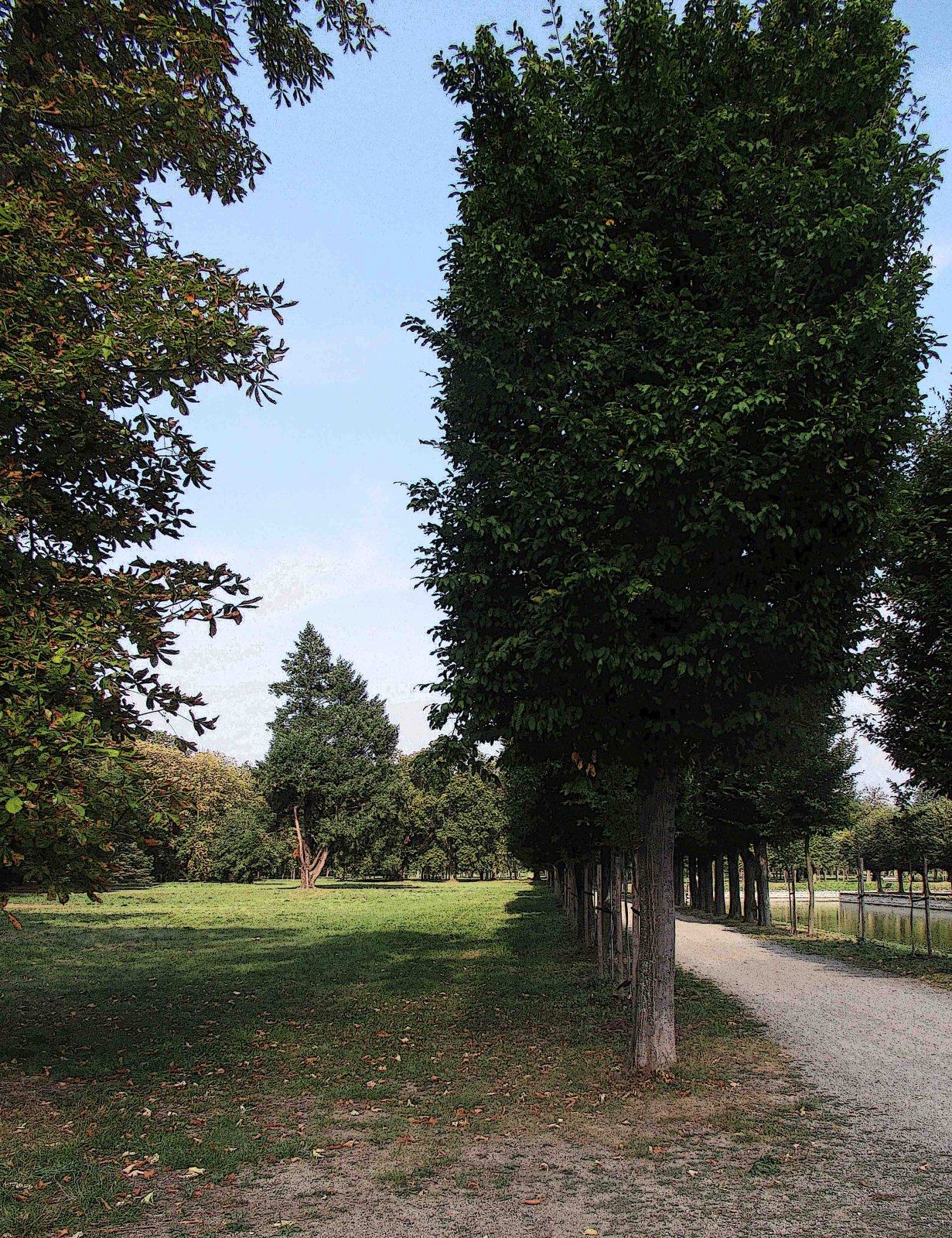 stromová alej s vodními kanály