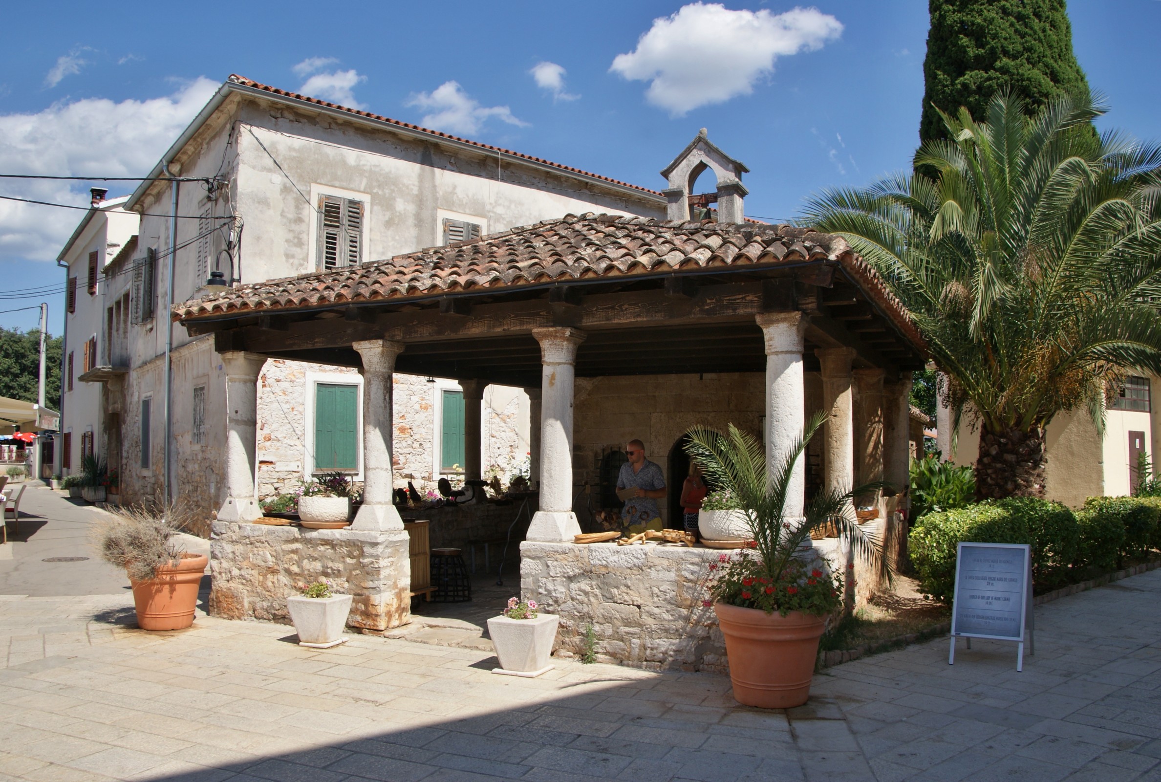 Ta před kostelíkem Panny Marie z Karmelu je pozdně barokní a byla postavena v roce 1732, kdy snad nahradila obdobnou stavbu o století starší. Samotný kostelík ovšem pochází pravděpodobně z II. poloviny 14. století, a to na základech staršího svatostánku, pamatujícího dokonce století deváté (z toho se ovšem nezachovalo naprosto nic). Tato kombinace je na Istrii poměrně běžná, originální je ovšem u této stavby skutečnost, že zdejší lopica je o něco vyšší, než samotná kostelní loď. A právě ta je z celého kostela tím nejdůležitějším. Nad vstupem do ní se nachází kamenná zvonová stolice – zde nazývaná preslica – osazená jedním zvonem.