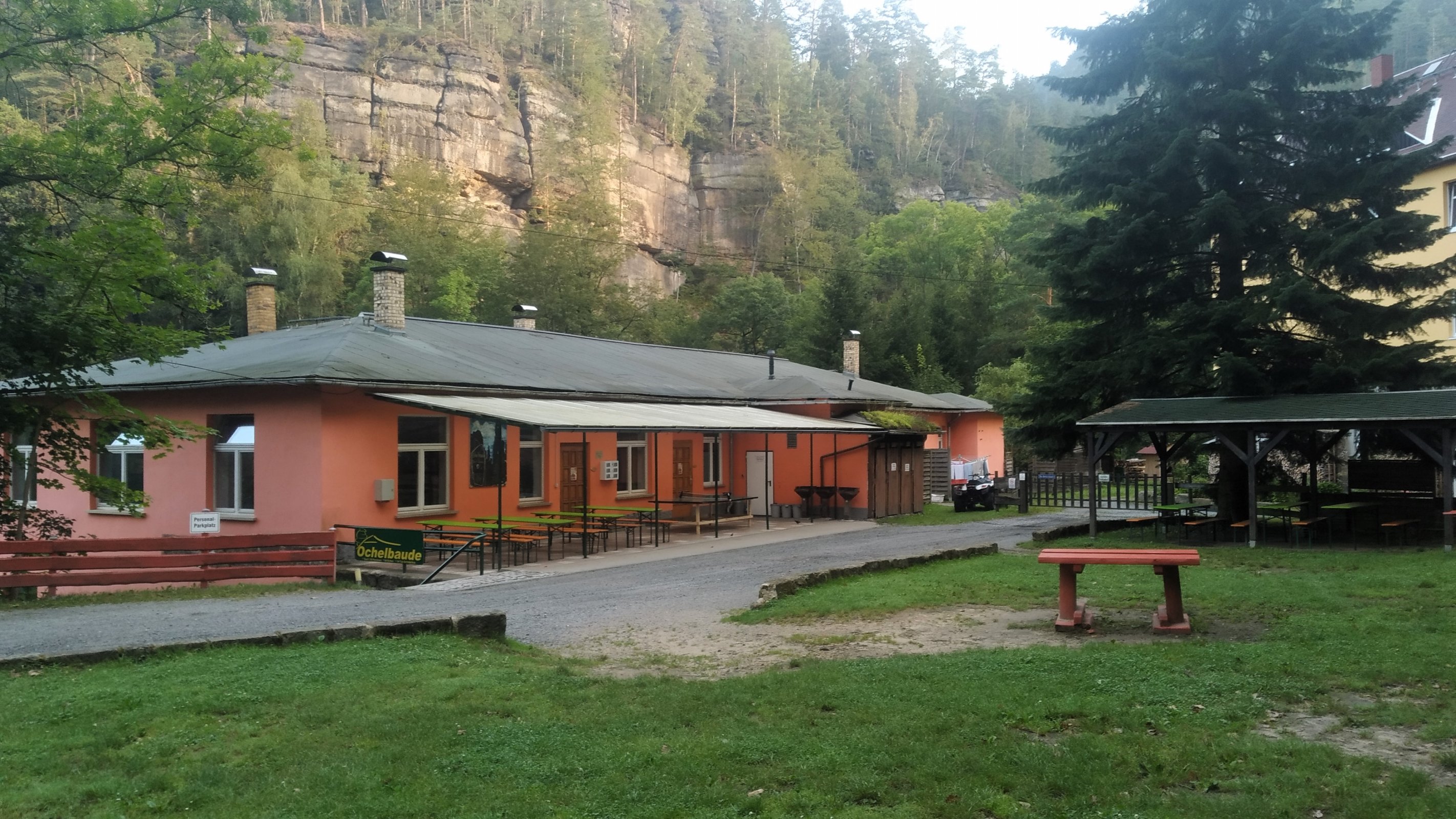 Kousek od nádraží Porschdorf je u chaty Ochelbaude malé parkoviště. Od parkoviště vede cesta mírně do kopce přes louku k bráně ferraty.