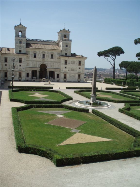 Zahrada Villa Medii soustředila ve svých prostorách a pavilonech přední díla antiky. Barokní zahrada má záhony a terasami, které pouze u paláce udržují geometrickou přísnost.Dnes je sídlem Francouzské akademie, kterou založil Ludvík XIV., aby umožnil francouzským malířům studovat v Římě