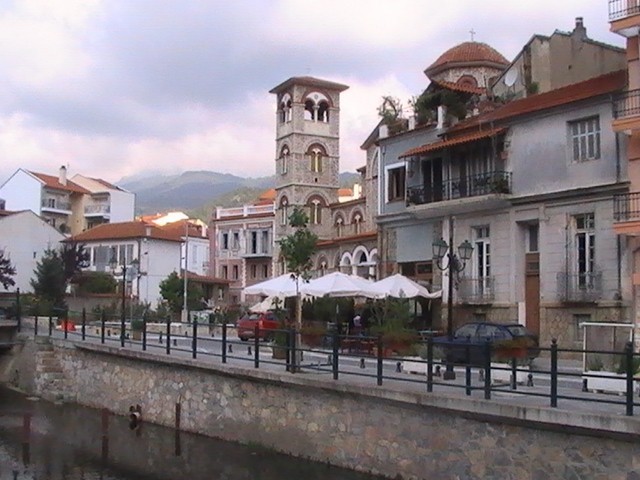 Vlakové spojení je pětkrát denně do Soluně. Jsou přímé vlakové spoje do Atén.