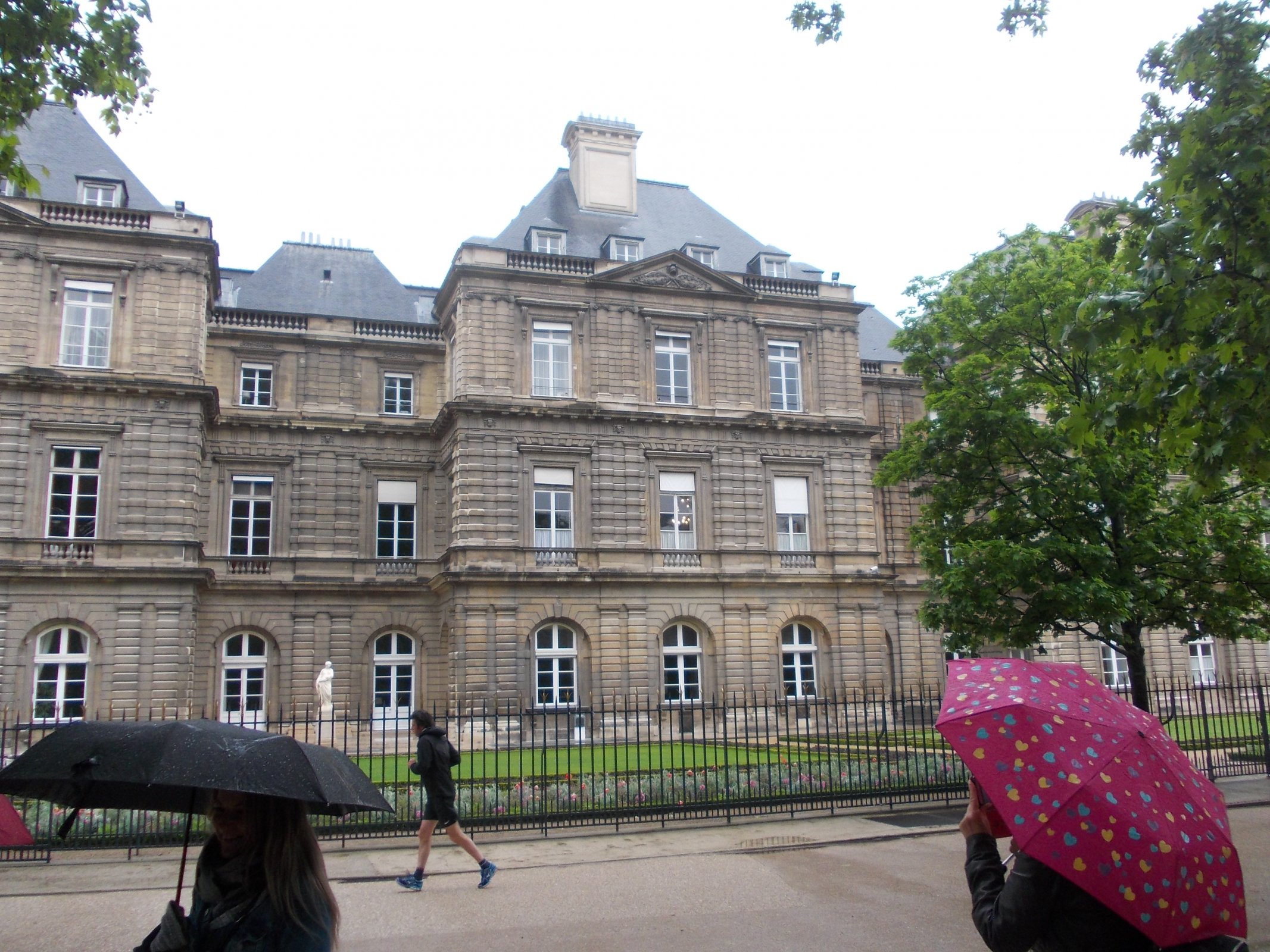 Luxemburský palác pri daždivom počasí