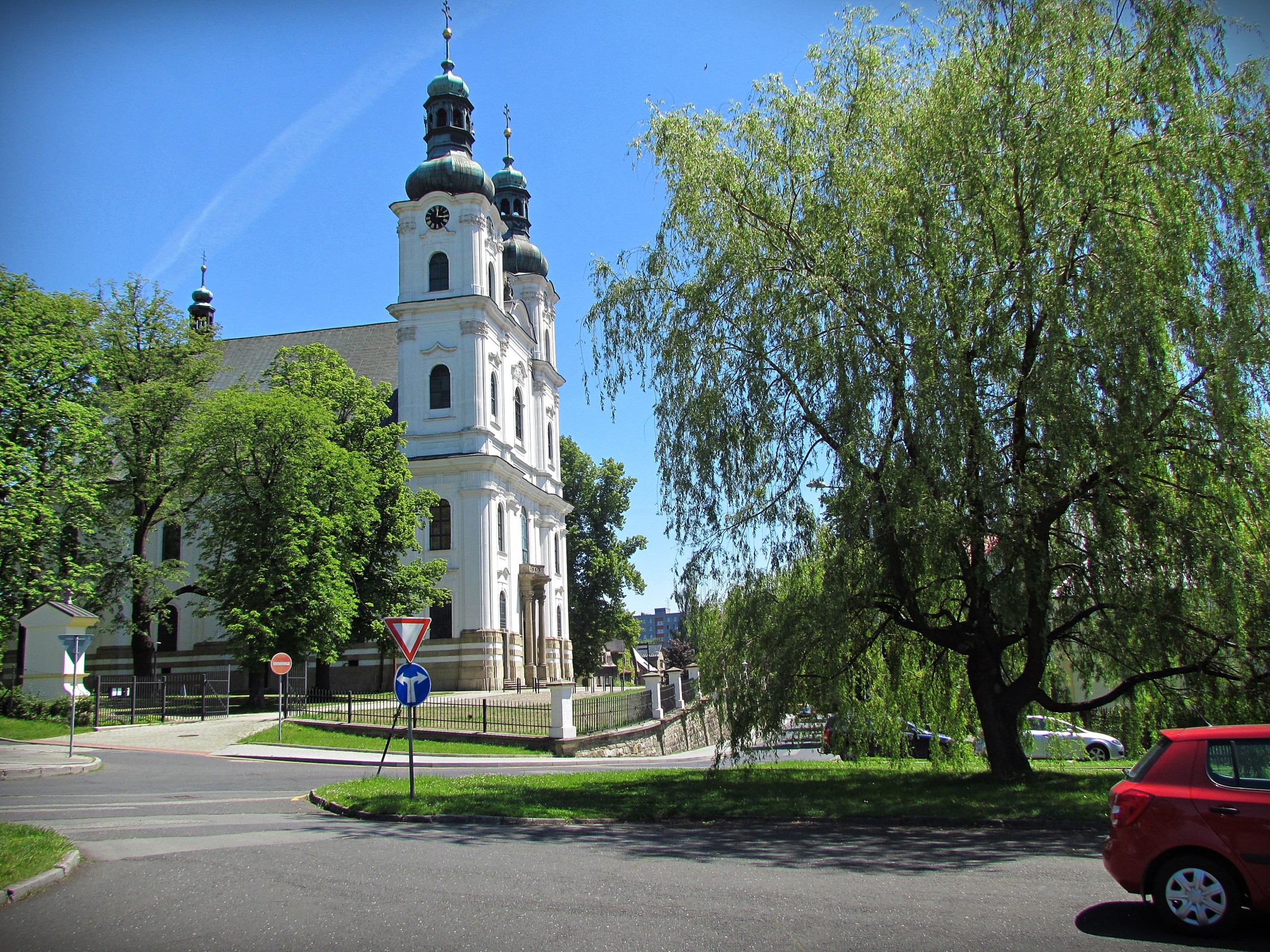Mariánské náměstí se nachází na výrazném návrší ve vzdálenosti 0.5 km na sever od Frýdeckého zámku a spolu s ním - kvůli své historické zástavbě, tvoří největší dominanty frýdecké části dvojměstí. Ale - zatímco se největší komplex budov nad Zámeckým náměstím v centru města stal luxusním sídlem frýdeckému panstvu, ten, stojící na kopci naproti, má ryze církevní charakter. Díky svému 60 m vysokému průčelí se dvěma věžemi je nejvyšší a největší stavbou Mariánského náměstí barokní poutní chrám (bazilika minor) Navštívení Panny Marie. Jeho stavbu financovala frýdecká vrchnost a byl dokončen r.1752. Nachází se na místě staré dřevěné kaple se zázračnou soškou Panny Marie Frýdecké. Nový chrám má jednu podélnou loď s půlkruhovým, odsazeným presbytářem a po stranách k ní přiléhá sakristie a kaple sv.Kříže. Uvnitř je po obvodu chrámové lodi zbudováno šest kaplí. O překrásnou výzdobu interiéru se zasloužil malíř E.F.Herbert a sochaři J.Schubert, O.Schweigl a H.Weismann. Hlavní přístup do chrámu se nachází na jeho jižní straně a umožňuje jej mohutná rampa se sochami svatých, které vytvořil v 60.letech 19.století V.Bohm.