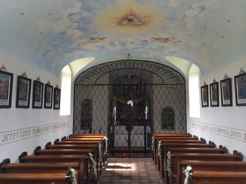 Pěkný kostelík na vrcholu kopce s krásnými výhledy.