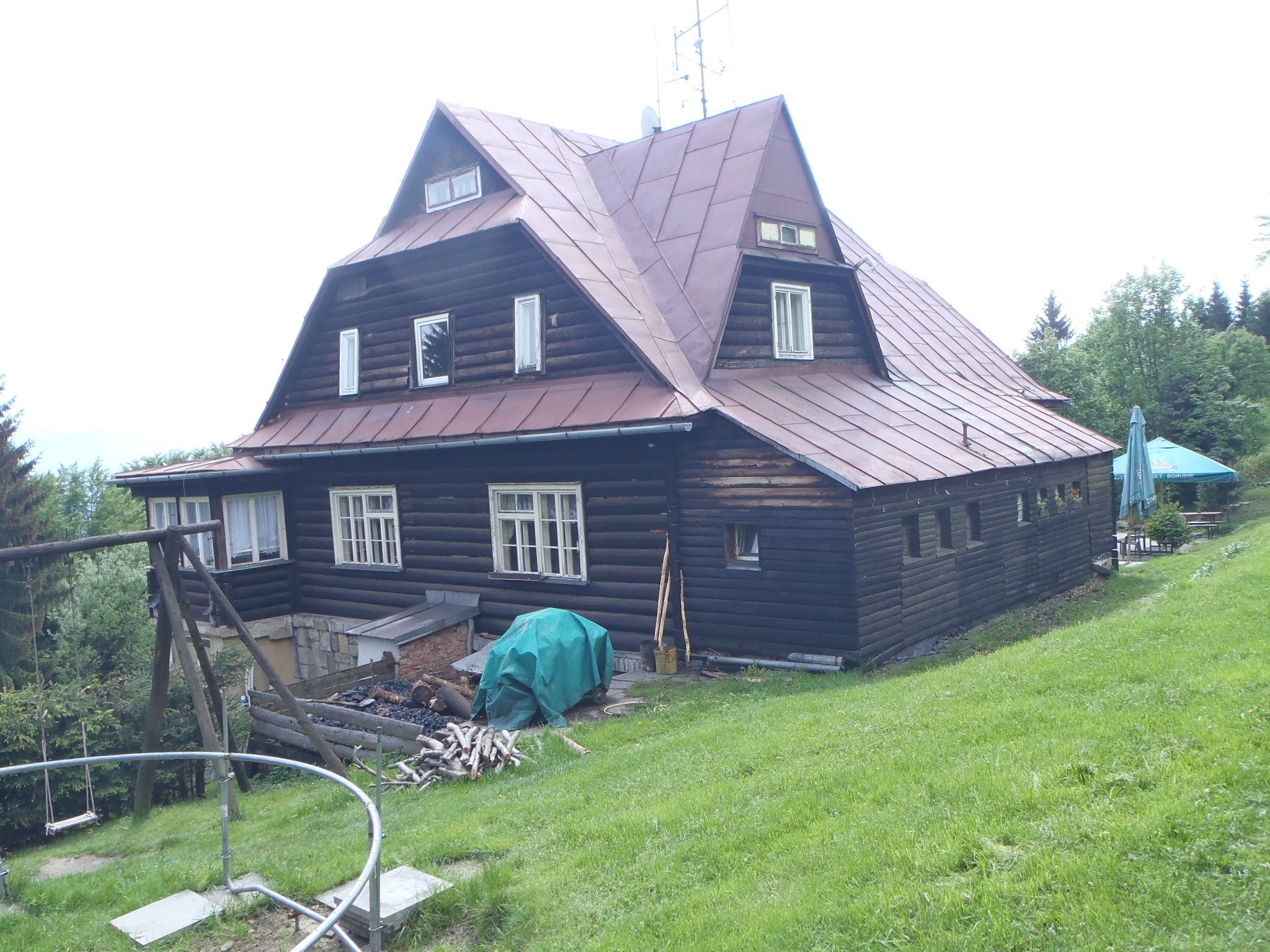 My jsme k chatě přišli od silnice z Markova. I když jsme se dočetli, že je v provozu a před chatou na tabuli byl křídou napsaný jídelníček, bylo zamčeno a v okolí nikde nikdo.
