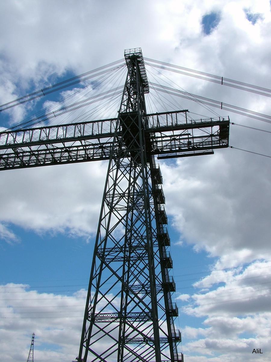 Transporter Bridge v Newportu ( Jižní Wales), gondola mostu byla na protějším břehu a řeka Usk v době odlivu.  autor: Alilka