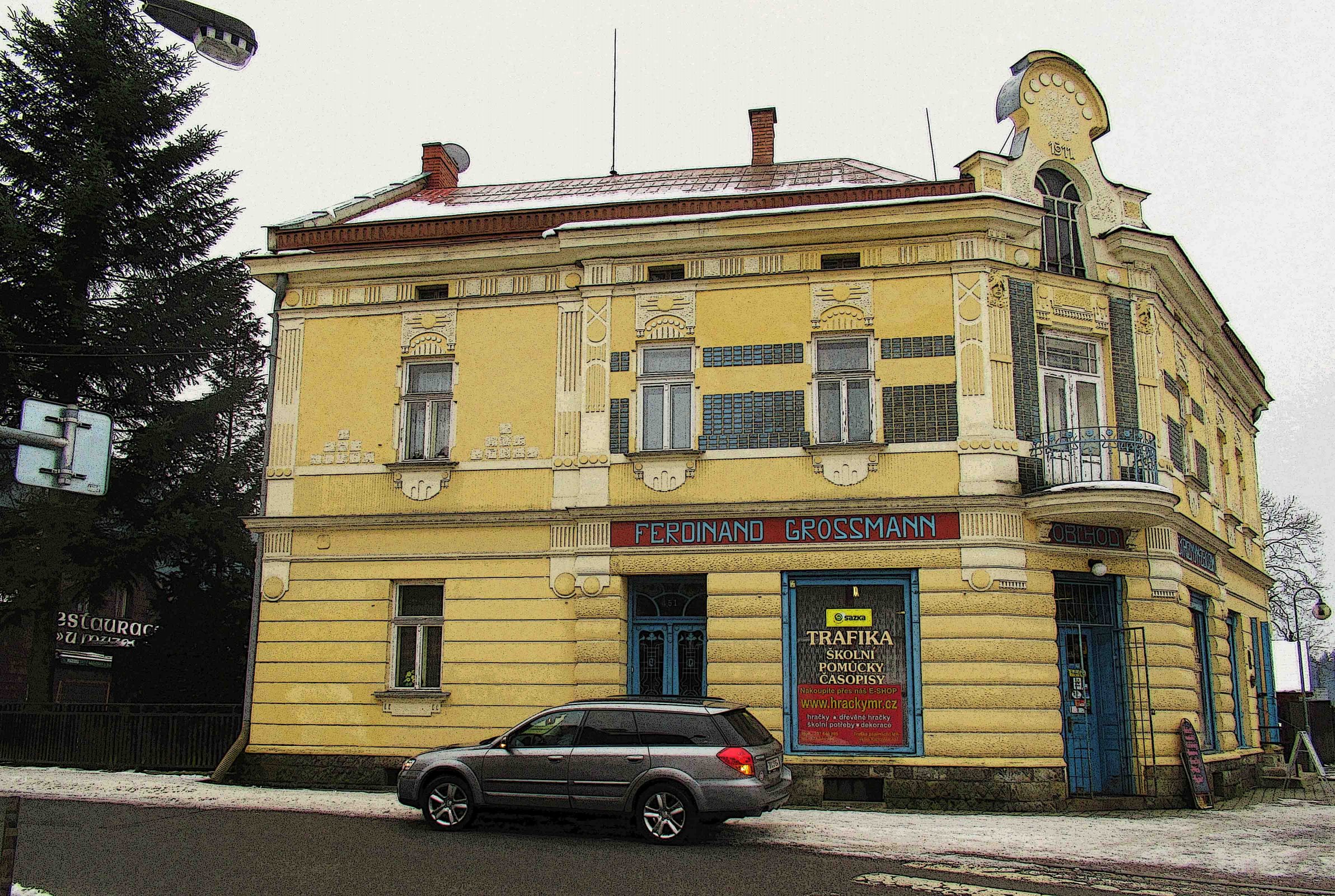 Jako zjevení mezi zástavbou dřevěnek a nízkých domů může působit velký žlutý dům, stojící v rozlehlé valašské obci - Velké Karlovice, rozložené na rozhraní Javorníků a Vsetínských vrchů. Když vystoupíte na rozcestí Soláň, ihned upoutá velká žlutá vudova na rohu u hlavní silnice. Měšťanský Grossmannův dům je zdoben secesní výzdobou. Bohatá rodina obchodníka Grossmanna tento dům nechala postavit na křižovatce rušných cest v centru Karlovic pro svou obchodní činnost. Nejdříve v něm provozovali krejčovství se střižným zbožím, později obchodovali se dřevem. Pamětní deska na domě připomíná dalšího obchodníka - D. Koláře, který v budově prodával. Roku 1944 byl oběšen nacisty za pomoc partyzánům. Historický Grossmannův dům patří k památkám obce Velké Karlovice. I dnes se v jeho přízemí nachází obchody - novinový stánek a vinotéka s bohatým výběrem lahodných vín, s mnoha druhy sýrů a s bohatým výběrem výborných valašských frgálů.