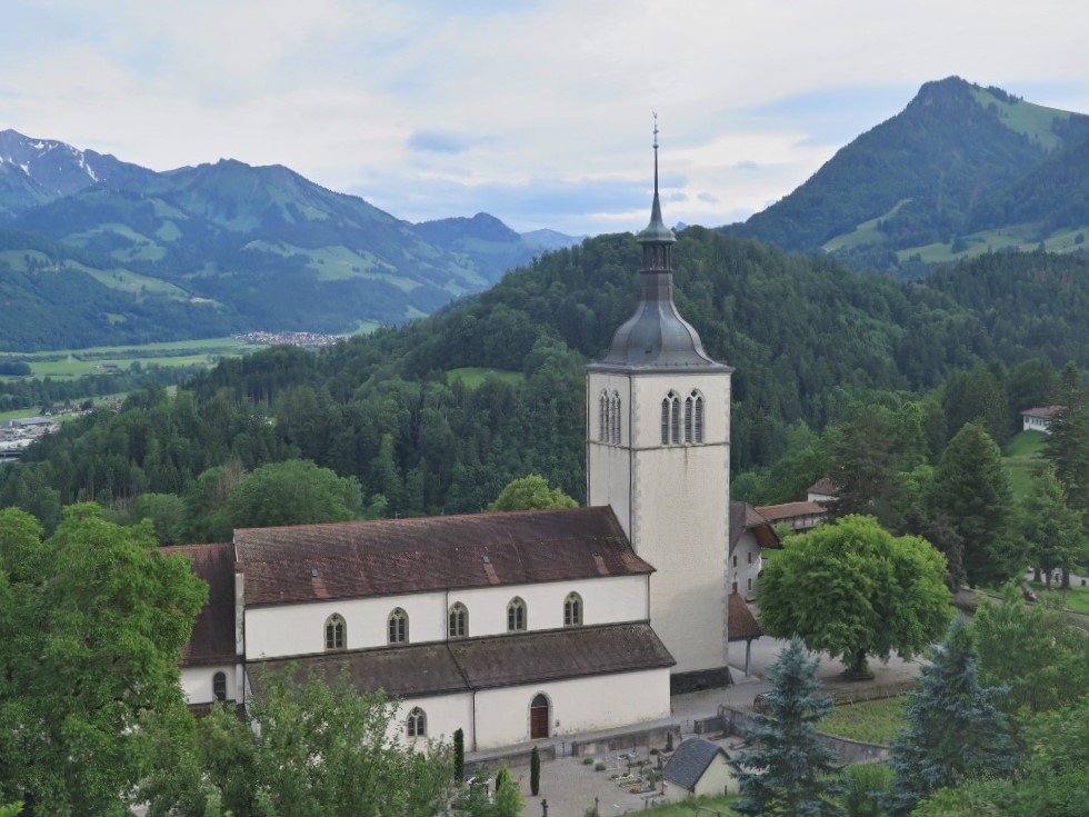 Kostel v kouzelném středověkém švýcarském městečku Gruyères je sice spíše „novostavbou“, ale i tak rozhodně stojí za návštěvu. Už jen proto, že se jedná o svatostánek, jehož historie se začala psát již v polovině 13. století. Jeho stavebníkem totiž byl hrabě Rudolf III. z Gruyère a k vysvěcení původního kostela došlo v roce 1254. Současná stavba láká hlavně na historické varhany a zvonkohru 8 zvonů.