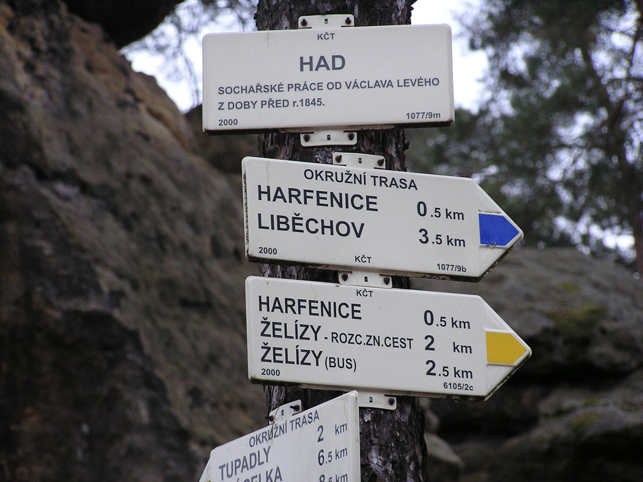 Pískovcový skalní výchoz opracovaný V. Levým do tvaru hada, který je přeťatý, zřejmě sekyrou. Lokalitu nalezneme u rozcestí modré a žluté TZN. Modrá přichází od Liběchova a dále pokračuje k Tupadlům a do Želíz odkud směřuje zpět k Liběchovu. Žlutá TZN vede od Želíz ke Štětí. Poblíže se nachází ještě několik dalších zajímavých útvarů, které poskytly inspiraci V. Levému pro jeho skalní tvorbu.