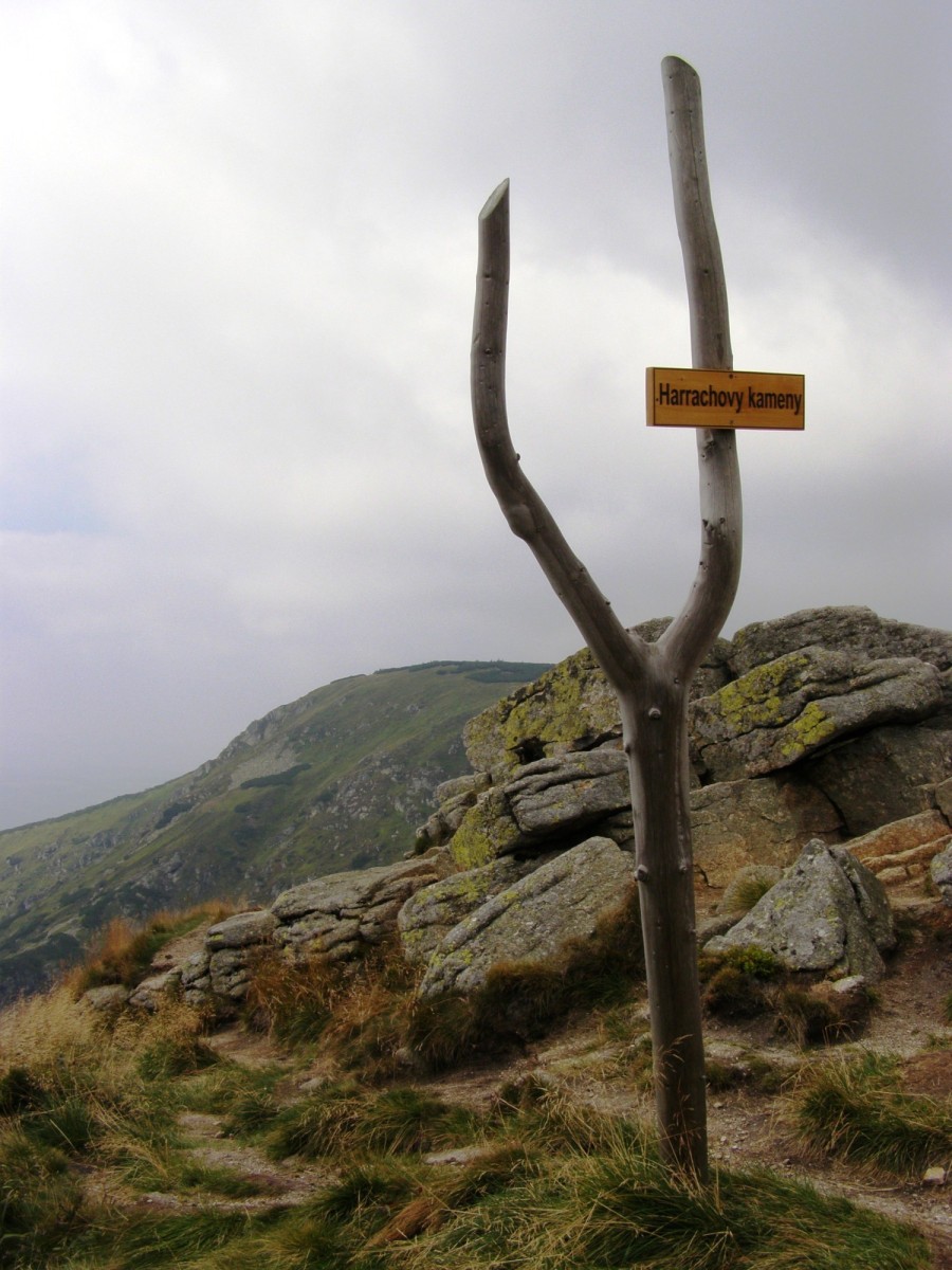 Blokovité Harrachovy kameny jsou nejznámějším útvarem na vnitřním hřbetu Krkonoš a ční nad hranou Velké Kotelní jámy. Nedaleko se nacházejí žulové skály, součásti bočních rozsoch pohoří, která se svažují na polskou stranu .