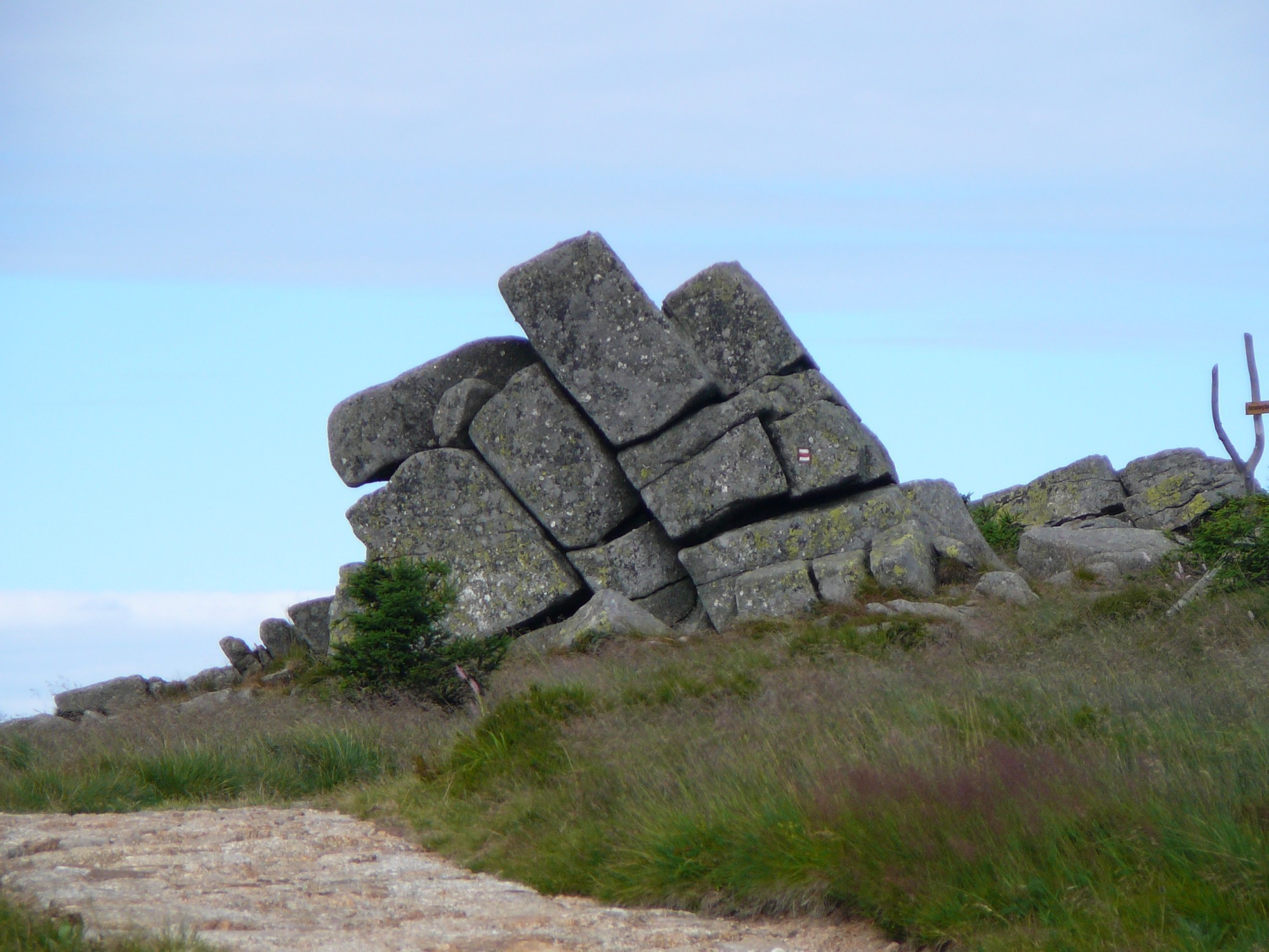Známé Harrachovy kameny kousek od Vrbatovy boudy. Poblíž dominantní kopec Kotel s krásným údolím pod ním. Stojí za to vidět!