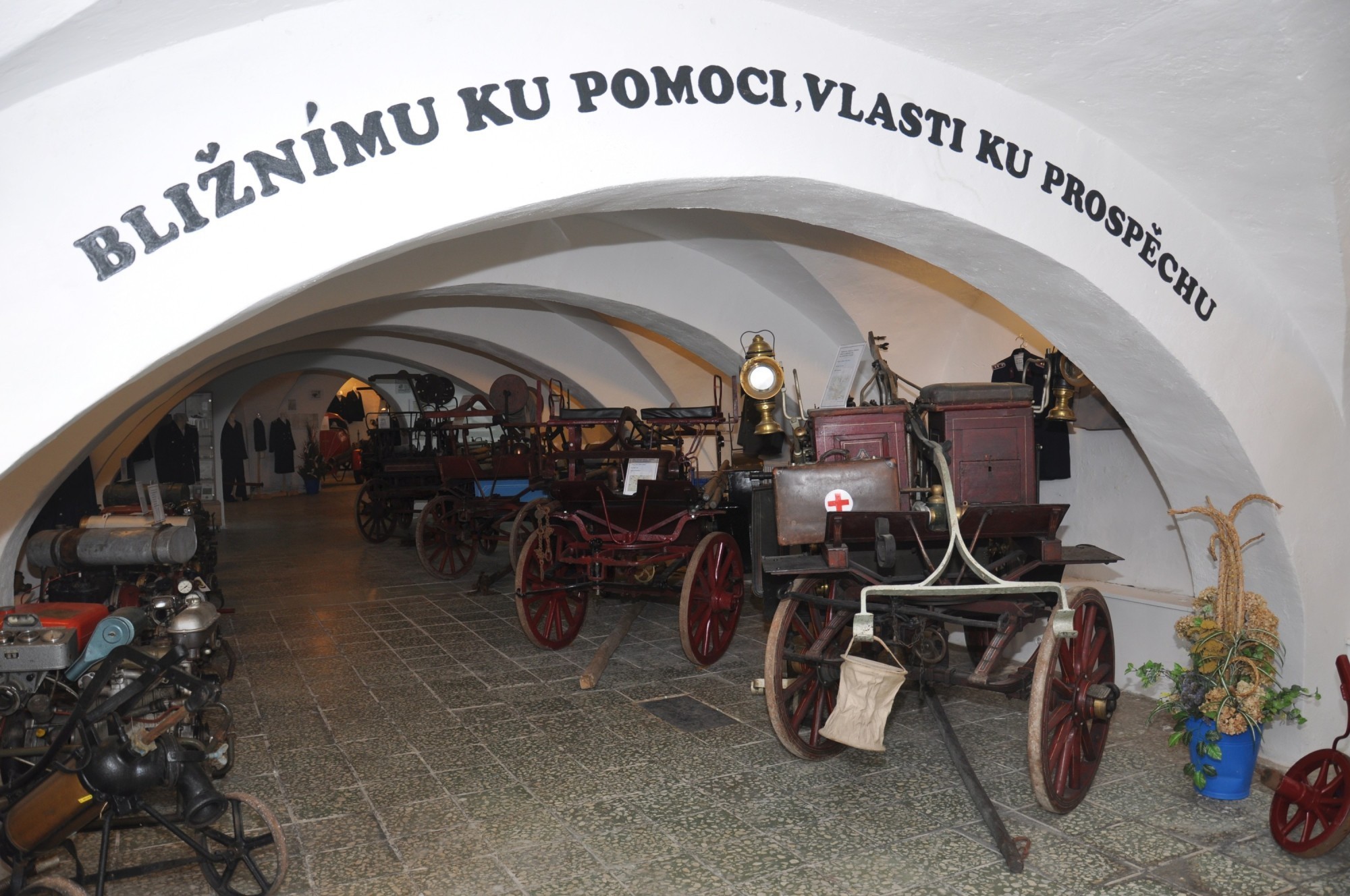 Jsou zde vystaveny historické dokumenty, hasičské přilby, koněspřežné, dvoukolové a přenosné hasičské stříkačky. V současné době je zprovozněna i nová část expozice s nejstarším exponátem koněspřežnou stříkačkou z roku 1842.