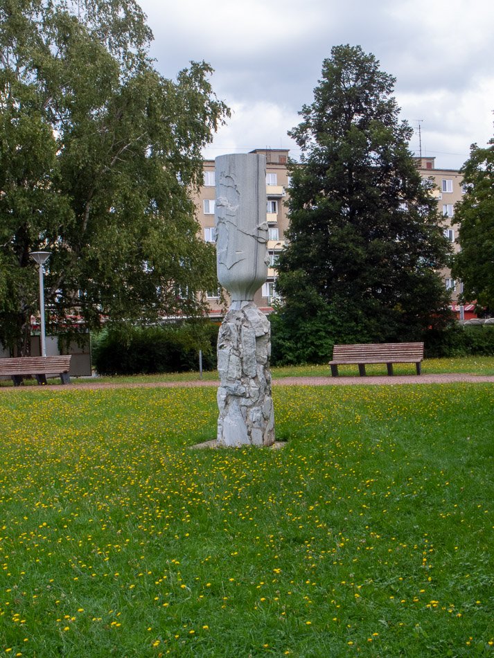 Objekt se skládá z podstavce, který tvoří válec ze zděného podstavce z nahrubo opracovaných kusů mramoru, na něj navazuje rozšiřující se válec s abstraktními vzory, tedy vlastním sochařských dílem.