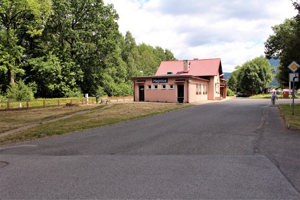 Hejnická vlaková zastávka je součásti regionální tratě 038 Raspenava – Bílý potok pod Smrkem. Trať je dlouhá 6,4 km a začala se stavět v roce 1899. Od 3.5.1900 tady začaly jezdit vlaky. Budova má kryté nástupiště, uvnitř je čekárna a pokladna. Mají tu i restauraci s omezenou otevírací dobou. Vlaky tudy jezdí v hodinových intervalech. U zastávky je velké parkoviště a zastávka autobusů.