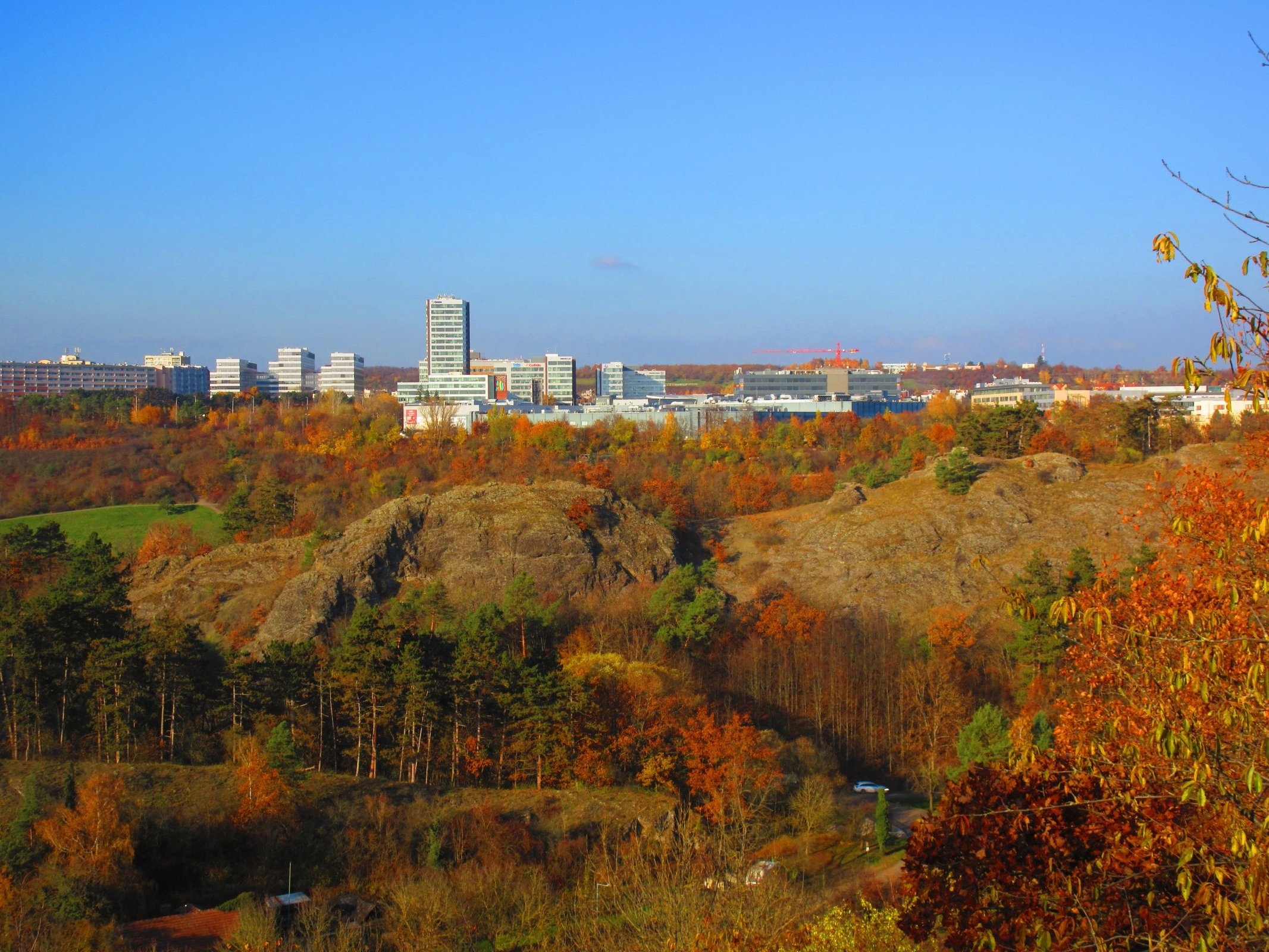 Pohled na Hemrovy skály z vyhlídek nad Prokopským údolím (Praha)
