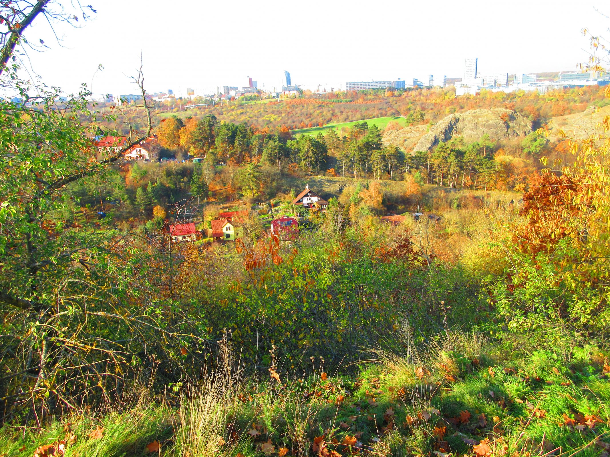 Pohled na Hemrovy skály z vyhlídek nad Prokopským údolím (Praha)