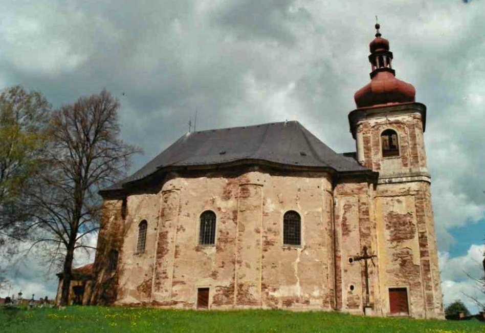 Tím hlavním zde ale zůstává „hřbitovní“ kostel Všech svatých, který stojí na mírném návrší nad vesnicí a představuje tak dominantu okolní krajiny. Základní kámen současného kostela byl sice položen v listopadu roku 1722, ale dřevěný kostel zde stával již ve 14. století (v roce 1672 byl – opět jako dřevěný - obnoven). Stavbu nového kostela inicioval opat Otmar D. Zinke a za autora jeho projektu vybral slavného barokního architekta Kiliána Ignáce Dientzenhofera. Stavitelem kostela byl některý z domácích zednických mistrů.