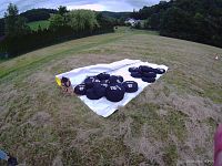 Nicméně já jsem si vybral tu nejjednodušší variantu, kterou bylo možné zvolit a to běh bez překážek. Na místo startu přijíždím ráno a s dostatečnou rezervou. Největší část závodníků k hospodě Belaria dorazí až za nějakou dobu. Díky tomu mám čas si místo důkladně prozkoumat, především tedy část v údolí. Některým překážkám pochopitelně nemohu odolat a tak si zkouším například kolik váží malé a větší pneumatiky. Malé (pro děvuchy) zvládám levou zadní. Tedy přesněji oběma, ale nečiní mi větší potíže. Pak se mou objetí stává velká, ale tu už nezvednu. Nemyslím, že by to bylo kvůli váze samotné, ale spíš proto, že ji není možné pořádně chytnout. Než jsem se dostal k pneumatikám, procházel jsem kolem balíků slámy, ale netuším k čemu by měly být. Až v době, kdy jsem již v cíli a vybíhá druhá vlna, tak pochopím k čemu. Budou muset překonat živou bariéru z velice pohyblivých hráčů amerického fobalu. Holky probíhají poněkud snadněji, ale jen poněkud… :-) Před tím se všichni rozcvičili na švihadlech a někteří jeli jako stroj. Na rozehřátí je čeká 100 přeskoků. Toto patří k zábavnějším částem již ryzího závodu s překážkami.