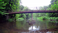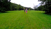 U spodního parkoviště vidím „rybičky“, tedy rybiny po kterých se má s tyčkou vyskakovat výš a výš a hlavně nespadnout, což zde lze velice lehce. Čeká mě stoupání ke kostelu svatého Petra a Pavla a od něj sebíhám západním svahem kolem pivovarských sklepů k „houpavému“ lanovému mostu přes Moravici. Jsem tak nabitý energií (spíš adrenalinem) a vidinou cíle, že zde ještě pár závodníků předbíhám a most své pověsti neujde, houpe se pořád. Ale to mi je jedno, dokonce bych řekl, že se bavím... Po známé cestě se nekompromisně přibližuji k cíli. U „Pomníku pochodů smrti“ odbočuji doprava a míjím stanoviště s oštěpy a proplaváním trubkami v náhonu z „Mlýnské strouhy“. Toto bohužel zjišťuji až když v ještě větším slejváku mířím na autobus v Hradci. Místo toho vidím pouze louku a na jejím konci, daleko, cílovou bránu. Vnímání se zužuje vidím jen ten cíl.