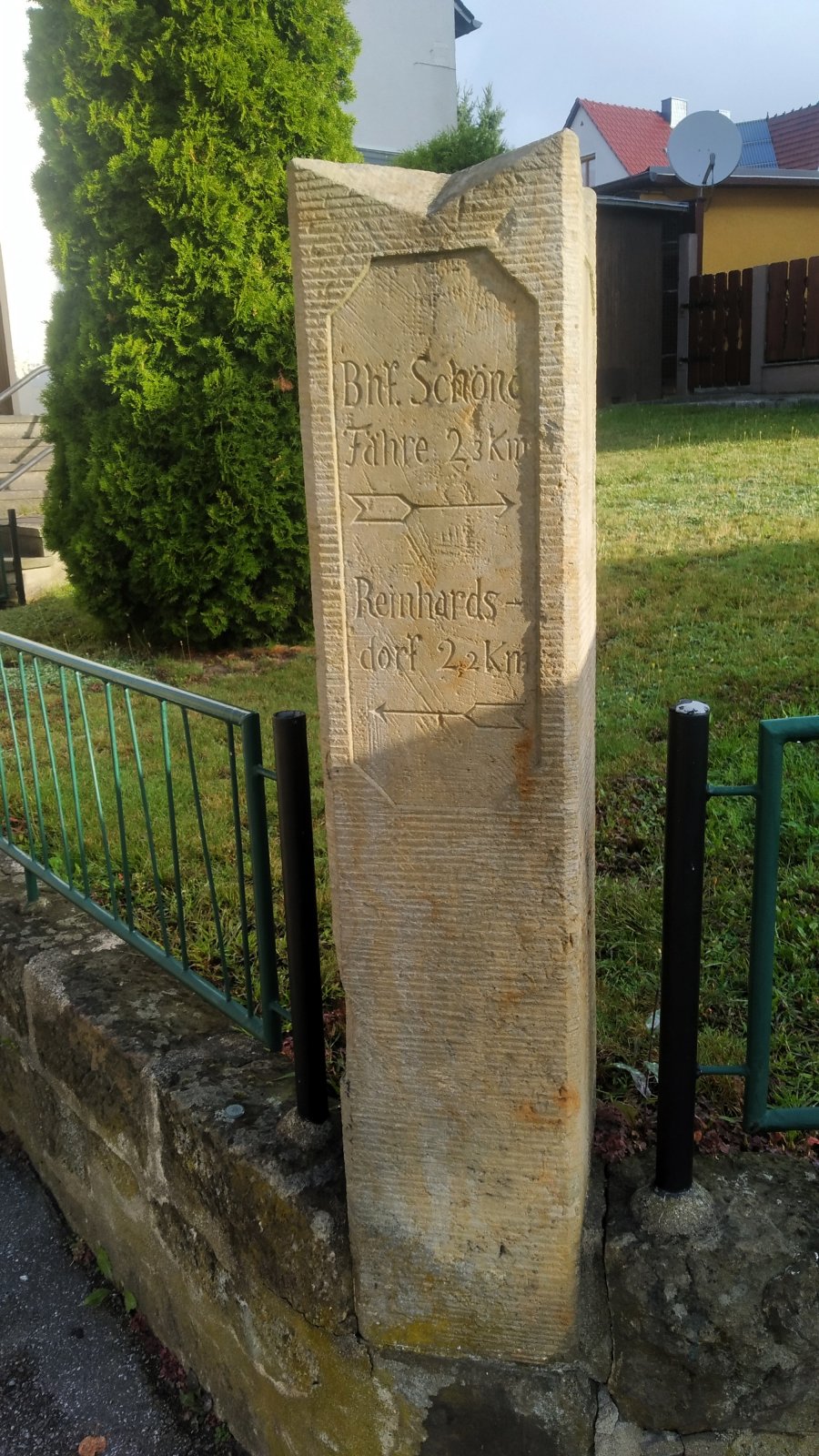 U křižovatky hlavních silnic v Schöně v Saském Švýcarsku stojí starý pískovcový ukazatel cest z roku 1833.