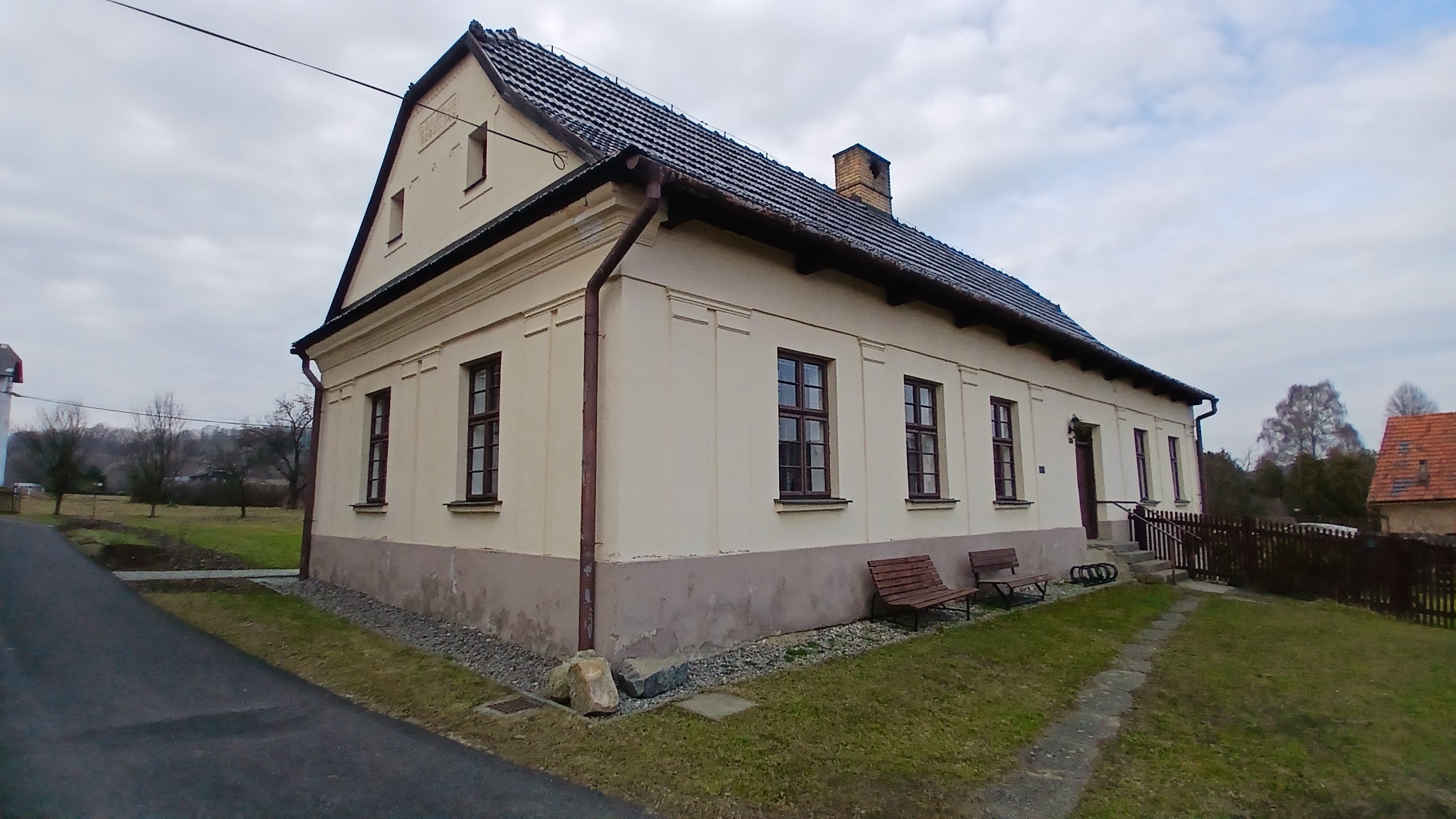 Bývala škola je prízemnou klasicistickou murovanou budovou v pôdoryse tvaru obdĺžnika so sedlovou strechou s polovalbou. Priečelie budovy má vysoký hladký sokel členený pilastrami, ktorých hlavice nesú vlys s profilovou rímsou. Okná sú obdĺžnikové, štít člení plošné rámovanie v dolnej časti s dvoma pravouhlými oknami v plošných rámoch, hornú časť štítu doplňuje kartuša s nápisom : "DŮM ŠKOLNÍ W ROKU 1846".