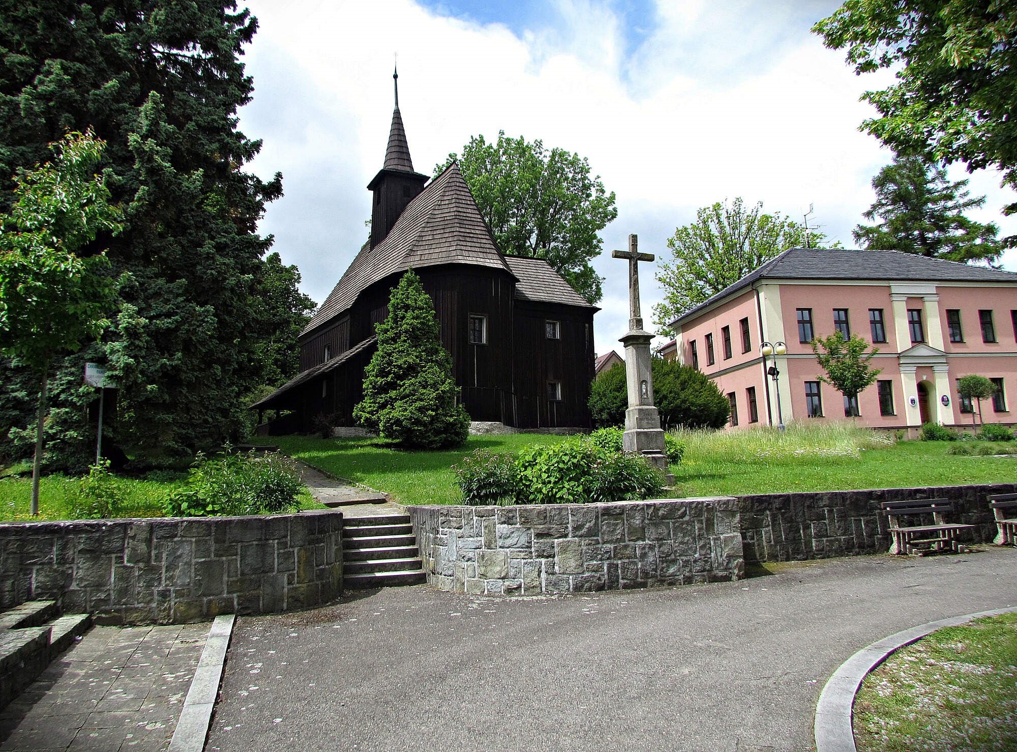 Kostel se do dnešních časů sice nezachoval ve své původní podobě, ale i tak je velmi cennou ukázkou umu pozdně gotických stavitelů. Od jiných chrámů se liší svou vertikální kulisou, umocněnou vysokou střechou a z ní vystupující vížkou. Ještě za protestantů byla dřevěná svatyně upravena a zvětšena o kruchtu, presbytář, podloubí a ochoz. Ve výsledku se jednalo o jednolodní kostel s polygonálně uzavřeným kněžištěm, v patře s kaplí s oratoří a ochozem obíhajícím chrámovou loď. Kolem svatyně se dříve rozprostíral hřbitov.
