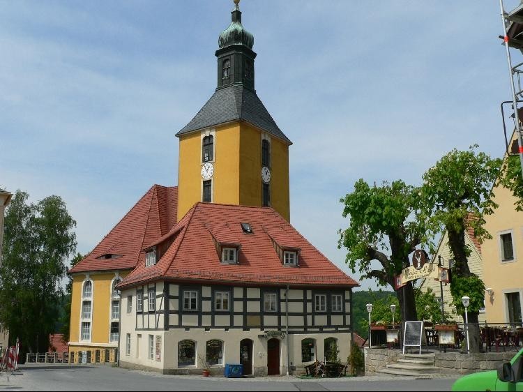 Město Hohnstein patří mezi nejkrásnější městečka v Saském Švýcarsku.Budova dnešní radnice byla postavena v roce 1688 a je tak nejstarší hrázděnou stavbou města Hohnstein. Původně zde byl malý pivovar, později obytná budova. Od roku 1855 pak první korková továrna v Německu. V roce 1917 byla budova přestavěna na radnici. Do portálu byl včleněn barevný erb. Malé nádvoří zdobí vodní koryto, které bylo vytesáno z pískovcového bloku. Spolu s lékárnou patří mezi nejkrásnější domy ve městě.