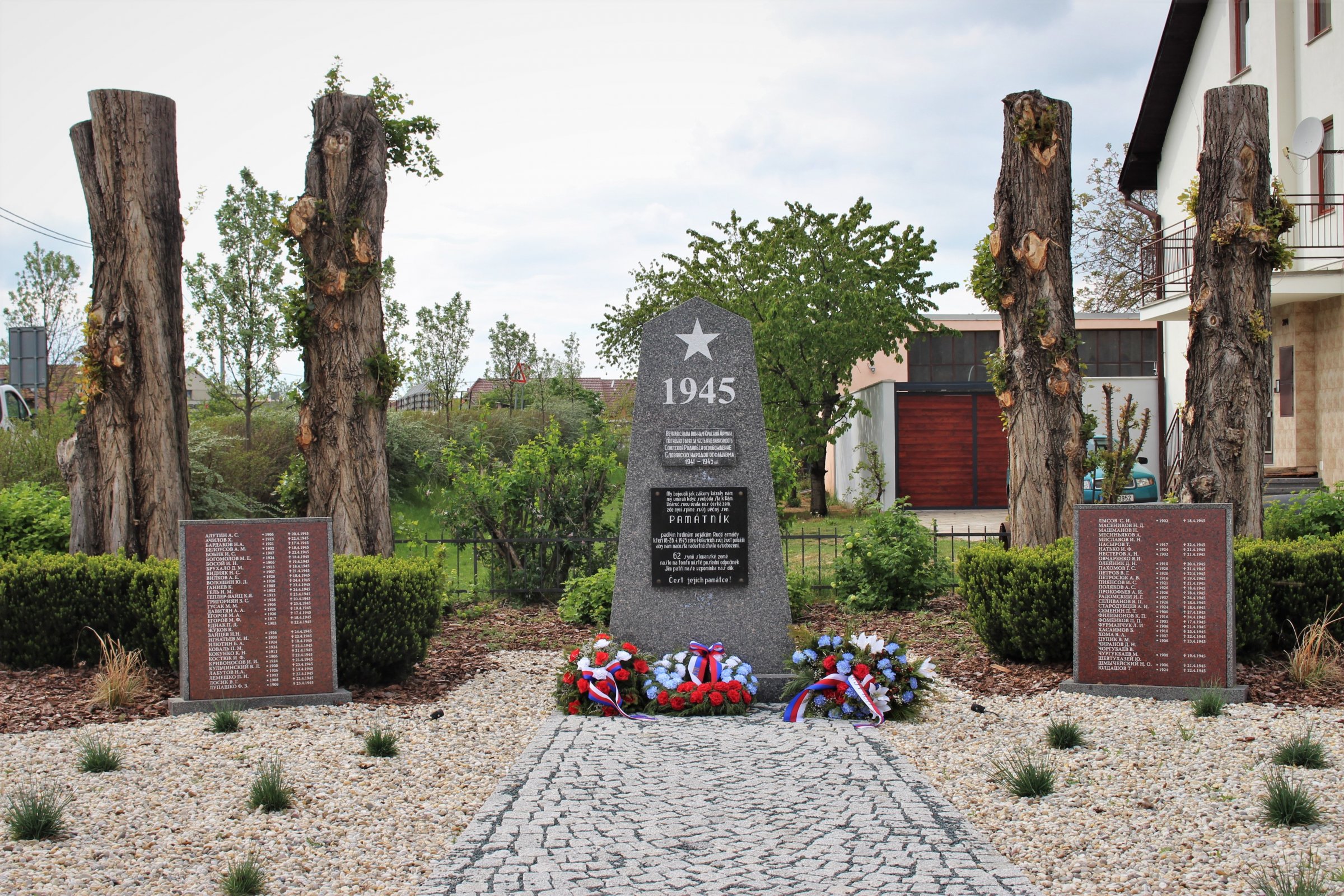 Nachází se v horní části obce na náměstí Rudé armády. Byl zbudován na památku 62 rudoarmějců, padlých zde při osvobozovacích bojích dne 25. dubna 1945. V roce 2018 pak proběhla nákladná rekonstrukce celého pietního místa. Nový památník je zhotoven z leštěné jemnozrnné žuly, je dvojdílný (sokl a vlastní pylon). Na centrálním pylonu jsou umístěny dvě nápisové desky (první je v azbuce a druhá pak děkovný text občadů obce svým osvoboditelům). Nad ním je vytesána hvězda a letopočet 1945. Tyto motivy, jakož i texty na nápisových deskách jsou vystříbřeny. Po boku pylonu jsou umístěny volně stojící nápisové desky se jmény padlých vojáků. V nejbližším okolí památníku byly odstraněny přerostlé křoviny, seřezány a pietně upraveny za ním stojící vzrostlé topoly. K památníku je zbudována nová středová cesta osazená žulovými kostkami.