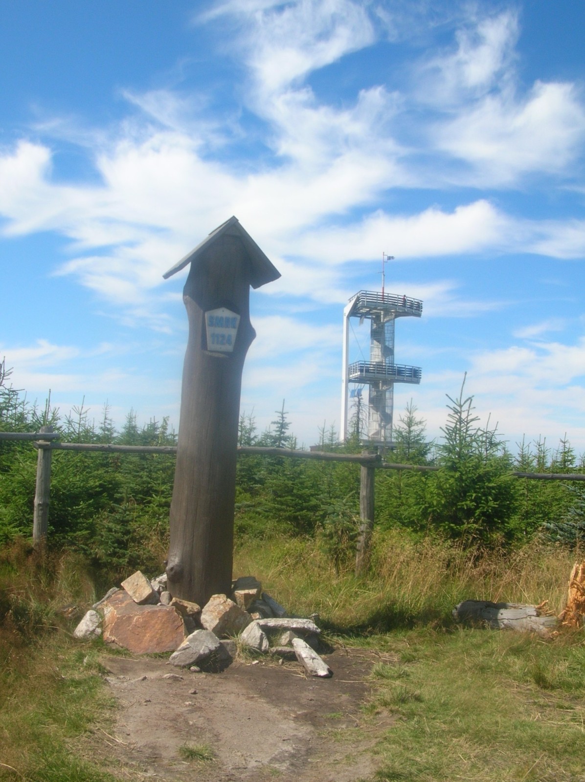Nejvyšší hora české části Jizerských hor (1124 m). Kdysi se zde stýkaly hranice tří zemí - Čech, Slezska a Lužice. Dřevěná rozhledna z r. 1892 i turistická chata byly po r. 1945 zničeny.