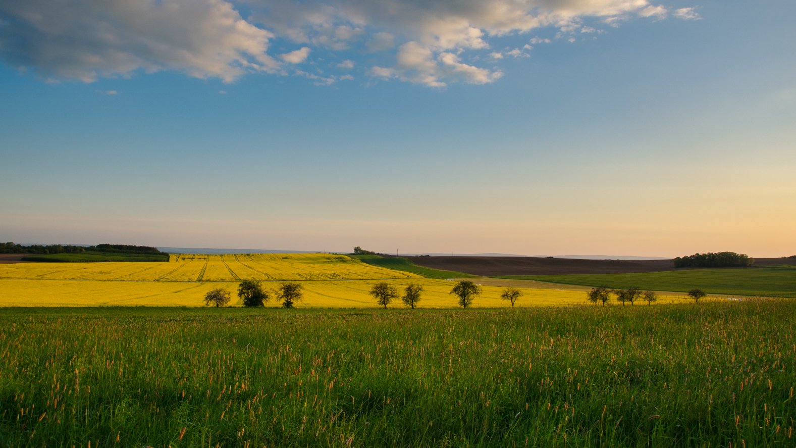Malý a velký Hořánek od severu, od farního kopce na okraji Horních Ředic