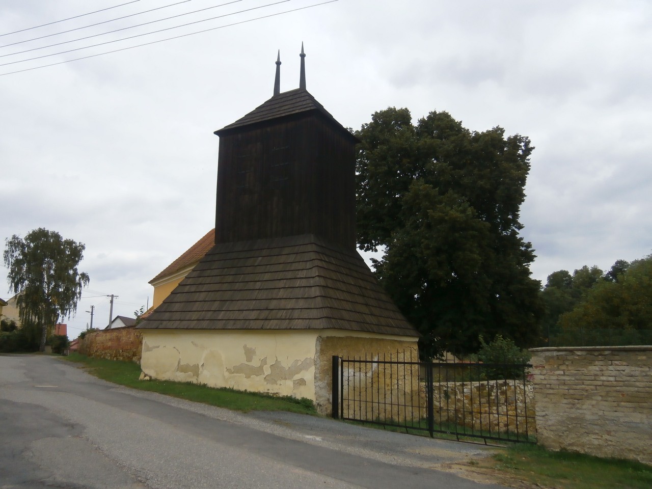 Příspěvky z okolí Hořešovice – dřevěná zvonice a kostel sv. Petra a Pavla