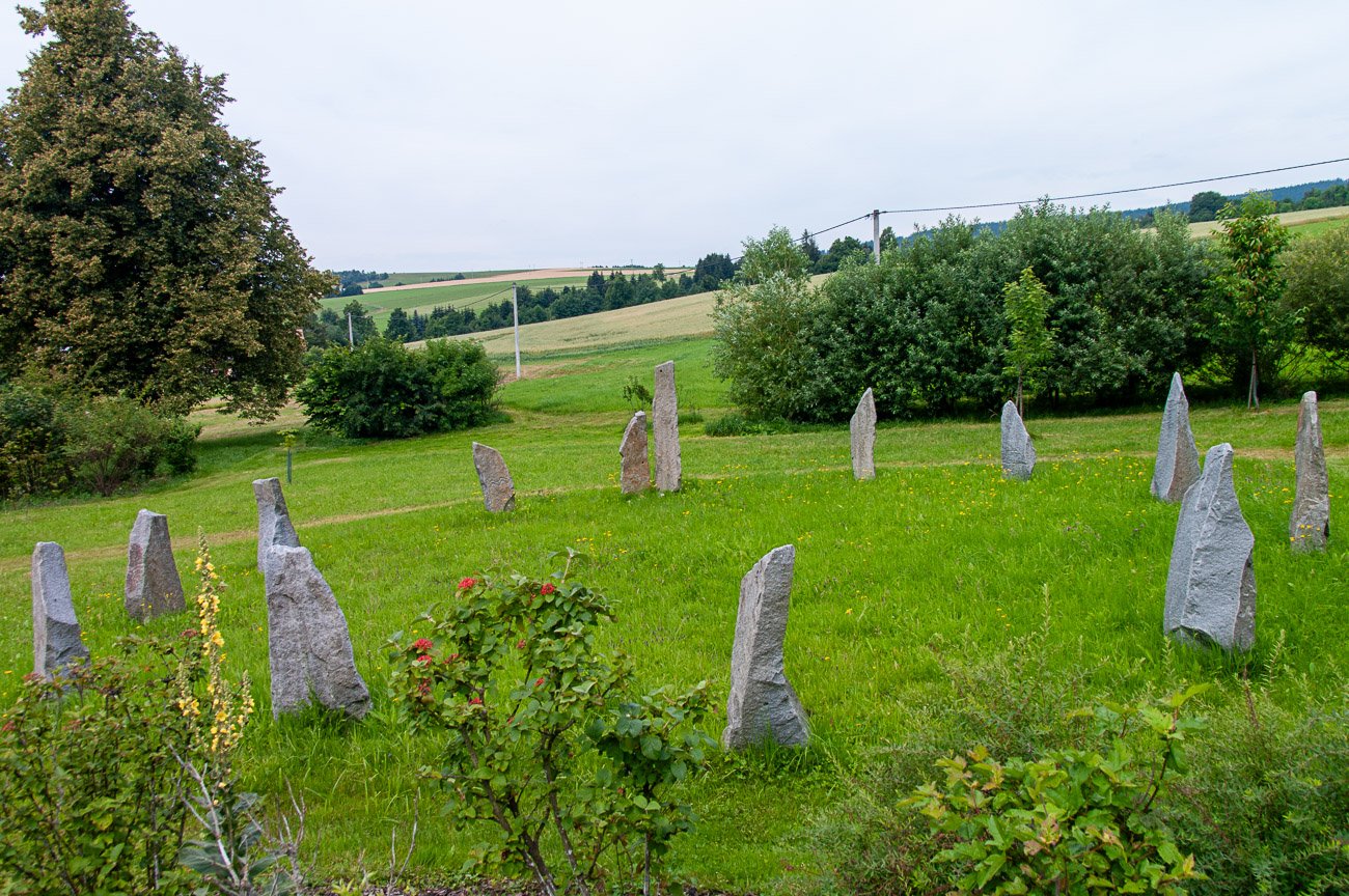 Zcela regulérní novodobý „megalitický“ kruh můžeme objevit na okraji Horních Heřmanic u bývalého statku. Dnes je objekt sídlem pobočky fy CorpoSan. Ta se zabývá výrobou doplňků stravy, tedy řekli bychom zdravou výživou. Ke zdravé výživě patří i zdravý duch snad právě proto na louce vedle této pobočky najdeme kruh ze štíhlých kamenů. Počet kamenů dosahuje 12, tedy zřejmě dle počtu měsíců v roce, jedno stanoviště je zdvojené. Při bližším zkoumání na některých kamenech objevíme prazvláštní symboly. Ovšem pro ty, kteří viděli např. Takový Pátý element nemusí být symboly tolik tajemné. Celkem obstojně připomínají 4 základní elementy, tedy zemi, vodu, vítr (vzduch) a oheň. Milla Jovovich (nebo jiná dokonalá bytost) která elementy spojí chybí, tu si návštěvník zřejmě musí dodat sám, nebo snad až přistanou Mondošivané.