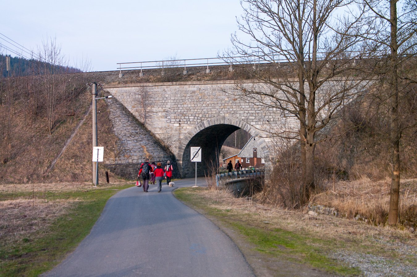 Samotná železnice byla v celé délce otevřená v roce 1888 a na její trase je k vidění několik zajímavých staveb. Mezi ně bezesporu patří mohutný viadukt v Horní Lipové, právě v místě jednoho z oblouků, který „Slezský Semmering“ využívá k výstupu do horského sedla Ramzové. Současný most není ovšem původní stavbou z 19. století, ale poněkud novější, byť již celkem již postarší. Stavitelé z řad italských dělníků (i tuzemských) jej dokončili 7.9.1910. Most je z masivní konstrukce kamenných kvádrů s pojivy betonu. Most s kamennou klenbou překonává tok Vápenného potoka a silničku, kterou mnozí turisté znají díky modré cyklotrase 6044, kudy se jezdí i chodí ke známému lesnímu baru.