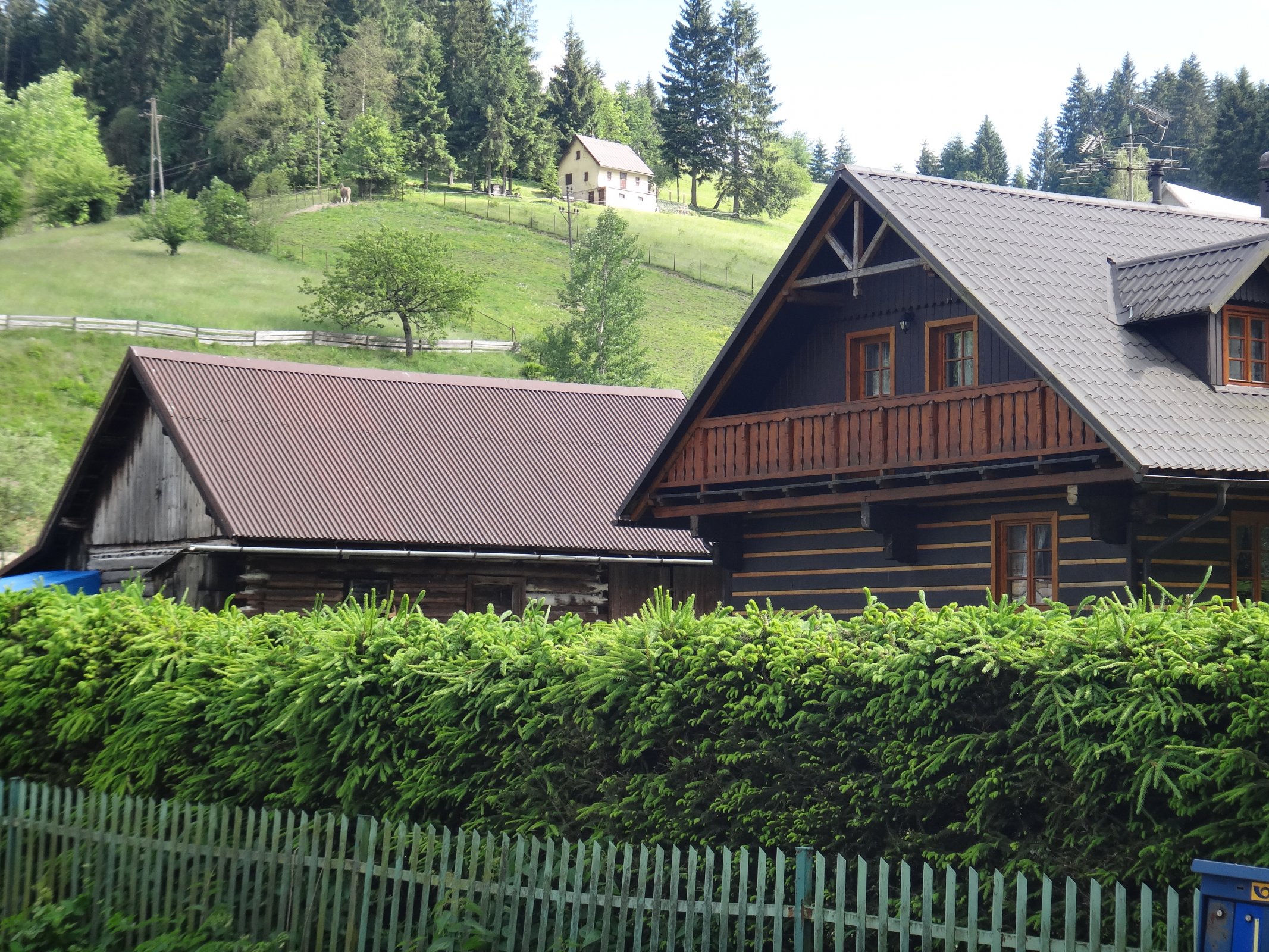 Při svém návratu od Kyčmolu procházím obcí Horní Lomná a zjišťuji, co se zde změnilo od mé poslední návštěvy v r. 2016. Dávno vím, že kde dříve bývalo koupaliště (z jedné strany voda přitékala a druhou stranou odtékala) je již dávno hřiště a hned vedle parkoviště. Jdu dále kolem bývalé základní školy a školy v přírodě, od r. 2014 je tam domov pro seniory (Dům integrovaných sociálních služeb). Ale co je nového? Naproti domova je nový lesní parčík u šumné vody, který vybudovaly Lesy ČR. V přírodním prostředí přímo u říčky Lomné je posezení jak pro místní, tak hlavně pro turisty. Zde si mohou posedět buď v altánku nebo na lavičkách, dokonce si udělat i něco na ohništi. Z parčíku jsem vyšla na hlavní cestu a co nevidím. Na nevyužité travnaté ploše u fotbalového hřiště se tyčí cvičící stroje k rozhýbání těla. O kousek dál vyrostla během července a srpna r. 2016 zóna pro děti - Královský hrad, který disponuje lezeckou stěnou, skluzavkami, prolézačkami apod. Dávám si pivo v penzionu U Studánky, nesmí chybět foto kostela a kříže. A má poslední zastávka byla u hotelu Salajka u splavu, kde jsem se jako malá holka koupala ve studené vodě říčky Lomná.