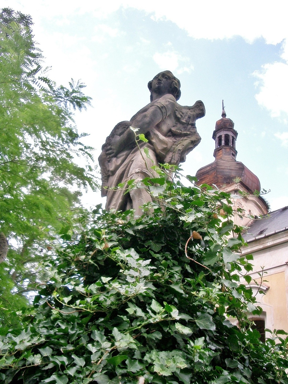U kostela pěkná socha sv.Rocha. Poblíž dům kde pobýval Franz Kafka.