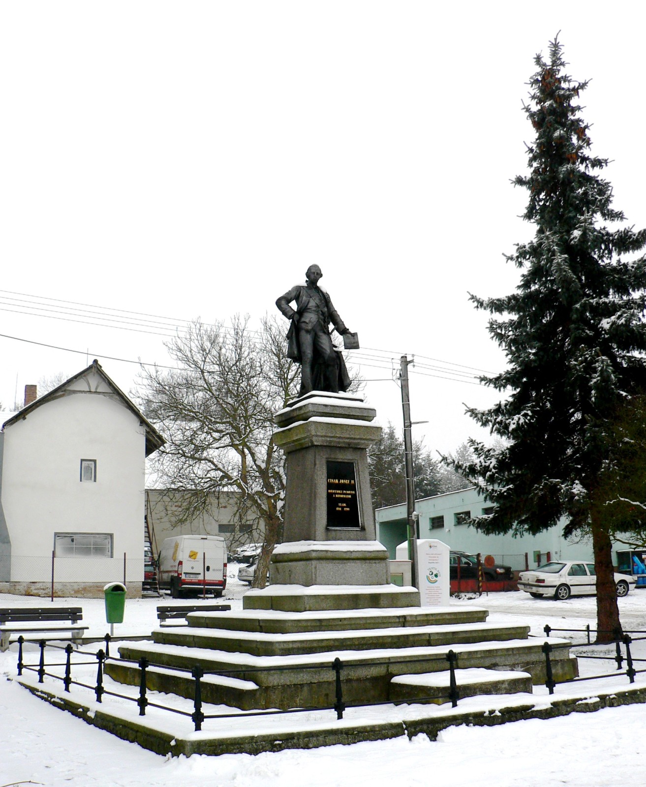 Při návštěvě Hořoviček mne kromě dvou kostelů zaujaly i pomníky a detaily na některých domech, které v obci jsou. Hned u autobusové zastávky je socha císaře Josefa II. Jde o odlitek z Blanska od pana Veverky. Byl vztyčen 1903 a v době 1. republiky stržen. Později jej objevili pod podlahou pravoslavného kostela sv. Cyrila a Metoděje a umístili pod kaštanem vedle kostela Nejsvětější Trojice. Po restaurování v roce 1991 byl znovu postaven na původní místo. K mému překvapení to byla třetí stejná císařova socha, kterou jsem viděl - jedna je v Josefově (část Jaroměře) a jedna v muzeu ve Znojmě. Jsem zvědavý, kdy a kde narazím na další