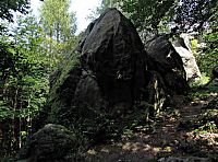 Jenže při mé poslední návštěvě letos v létě jsem je měl problém vůbec najít, protože ve svahu od Tisového nebyly v hustém hvozdu ani kouskem svého kamení k zahlédnutí a navíc zde právě probíhala výstavba nové zpevněné lesní komunikace. Tak se stalo, že jsem musel sestoupit až k silničce dole v údolí, a poté se do zalesněného ostrohu nazdařbůh vyškrábat jakousi pěšinou. Naštěstí mne zavedla k cíli, ale tady jsem skoro zaplakal nad viděným.