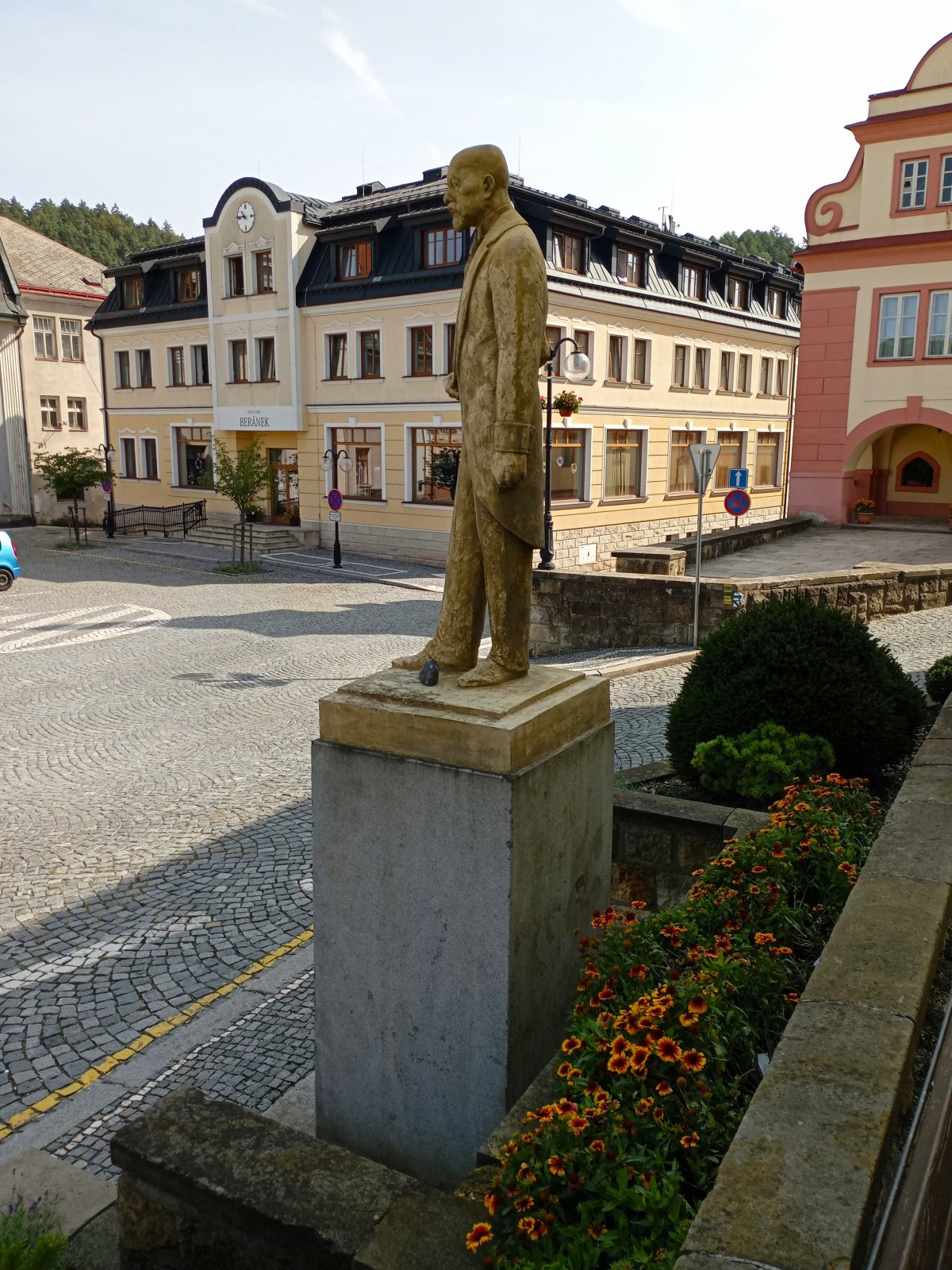 Senior dům Beránek s pomníkem T. G. Masaryka v popředí (Úpice)
